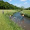 Illegale Entsorgung von Fladenbrot in der Schwippe. Die Feuerwehr hat die Lebensmittel welche teilweise noch in Kunststoff verpackt waren, mit Wathosen eingesammelt und entsorgt.