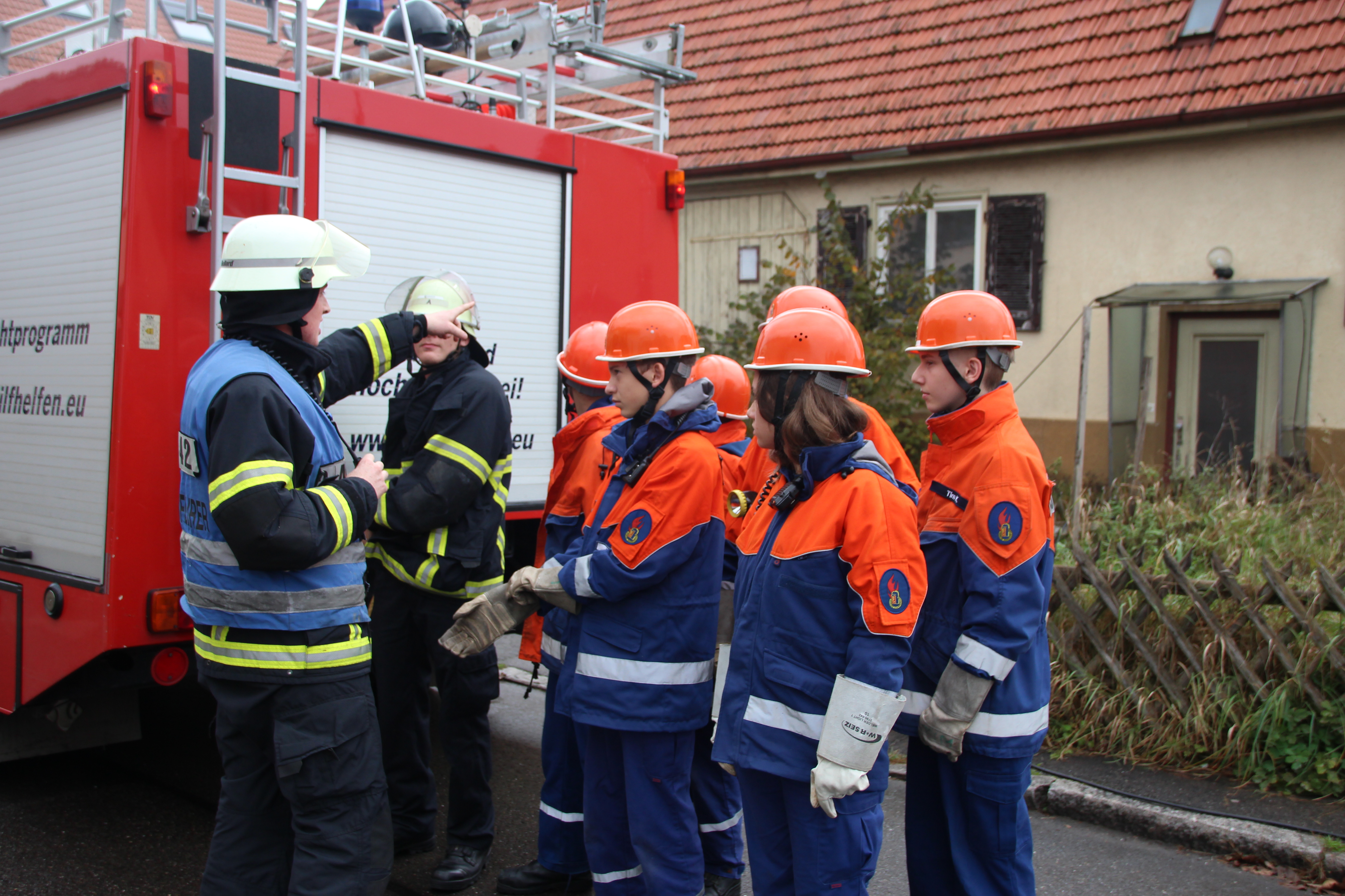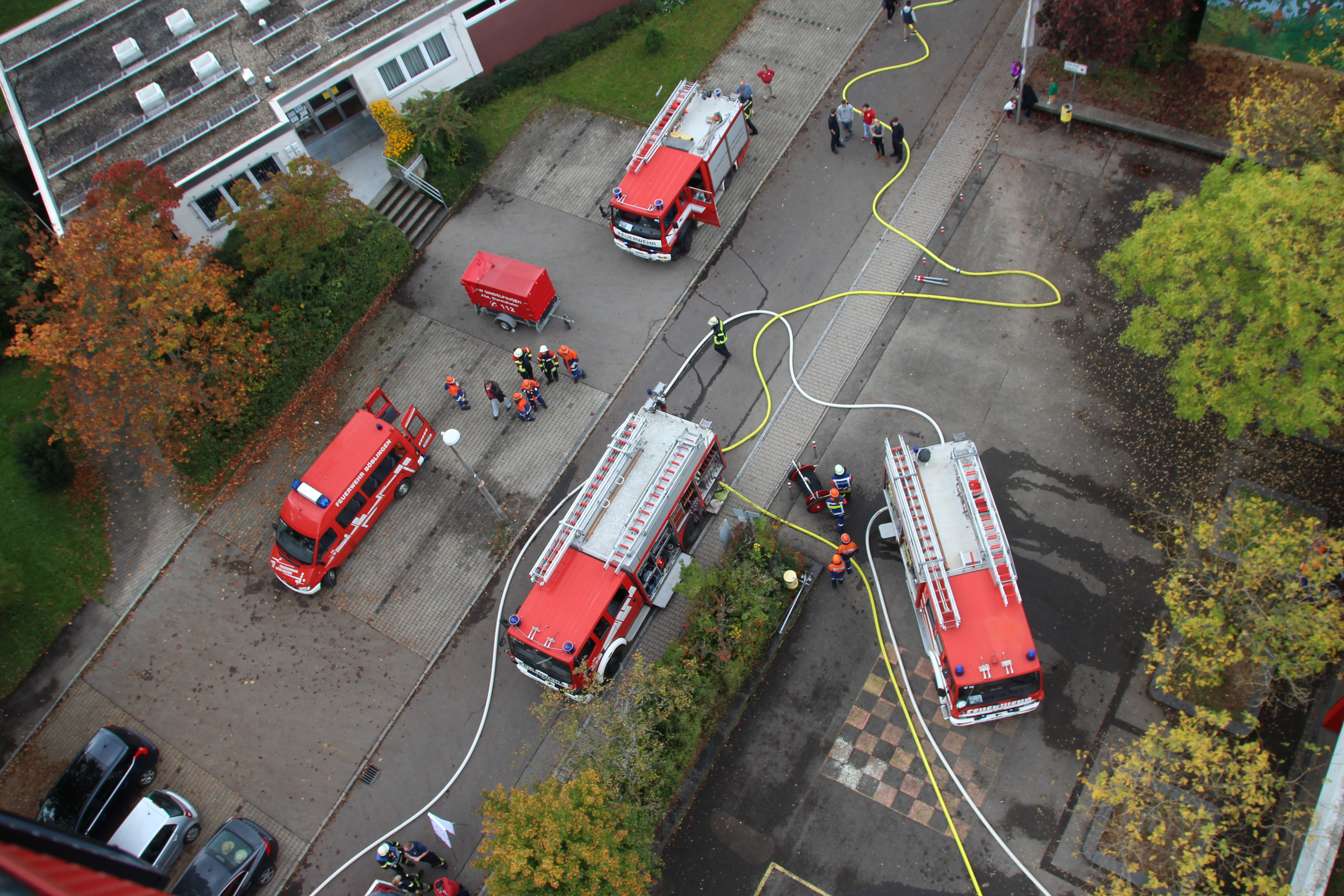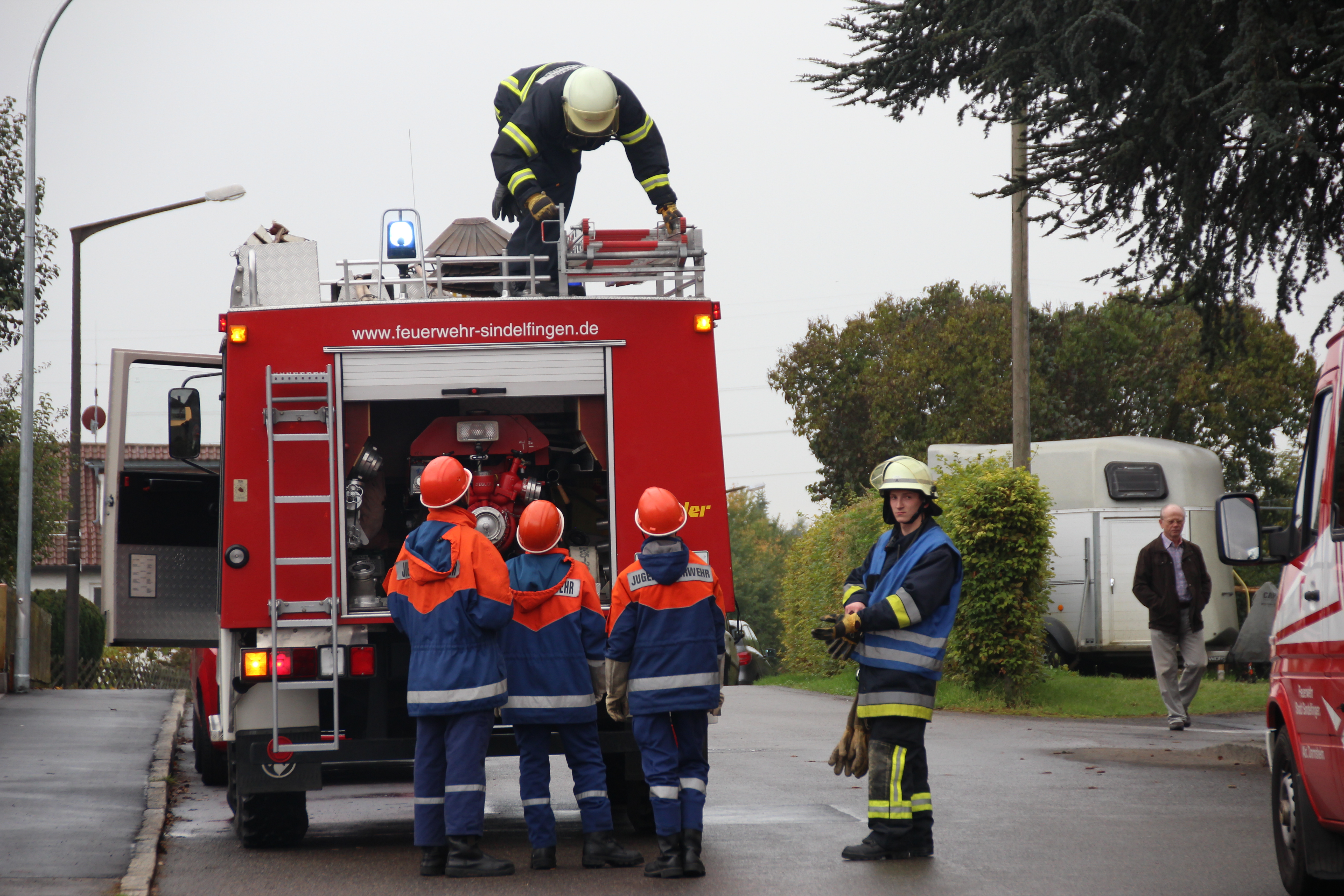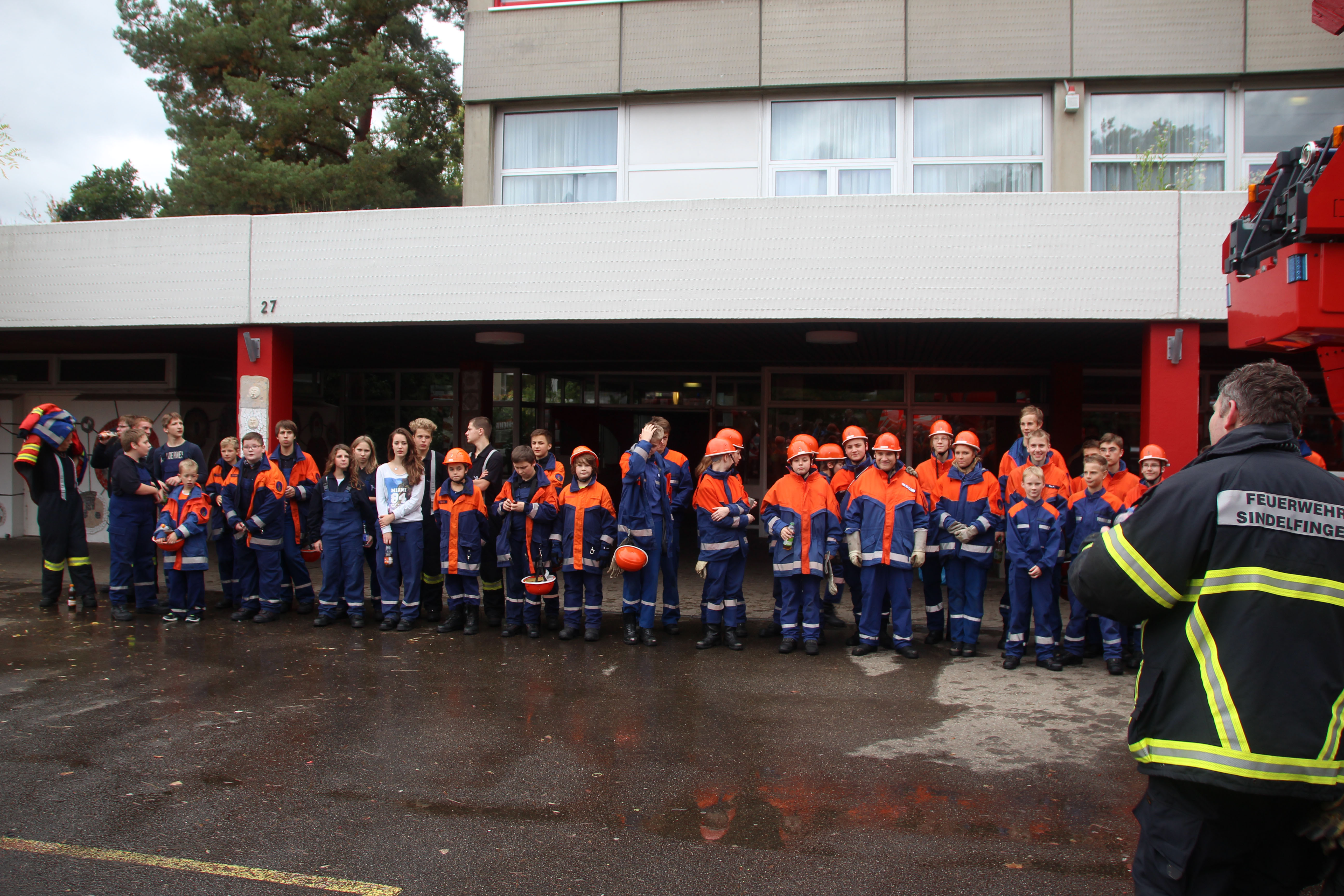 Vom  11.10. auf den 12.10.2014 fand bei der Jugendfeuerwehr Sindelfingen zum 5. Mal ein „24-Stunden Dienst“ statt. Dabei mussten die Jugendlichen zwischen 13-17 Jahren verschiedene, durch deren Betreuer gestellte „Einsätze“ absolvieren. Die Bandbreite reichte von einer bewusstlosen Person in einem Schlauchboot  auf dem Klostersee bis hin zu verschiedenen Bränden. Das absolute Highlight der insgesamt 21 Jugendlichen und ihren 18 Betreuern war die Großübung an der Realschule am Goldberg. Viele Zuschauer versammelten sich vor der Schule und blickten gespannt auf das Übungsobjekt. Rauch drang aus dem Gebäude. Plötzlich hörte man Hilferufe von mehreren Bereichen des Daches. Sofort war klar, dass bei einem solchen Großobjekt die Jugendfeuerwehr Sindelfingen, unter der Leitung von Jugendwart  Tobias Pfeiffer, dies nicht alleine stemmen konnte. Zur Unterstützung eilten die Jugendfeuerwehren aus Grafenau und Böblingen mit mehreren   Fahrzeugen und geballter Personalkraft hinzu. Außerdem wurde die Jugendfeuerwehr durch die Führungsgruppe der Feuerwehr Sindelfingen mit dem Einsatzleitwagen und durch die Drehleiter der Feuerwehr Waldenbuch tatkräftig unterstützt. Insgesamt retteten die Jugendlichen 9 Personen aus dem Gebäude und dem umliegenden  Gelände. Dabei wurde ihr gesamtes Können, das davor in mehreren Diensten geübt wurde, abverlangt und erfolgreich umgesetzt. Natürlich durfte Spiel und Spaß in dieser Zeit nicht zu kurz kommen, sodass man kurzer Hand den Fußball schnappte und loslegte um zusammen Fußball zu spielen. Leider musste  auch für die Jugendlichen ein sehr schönes Erlebnis einmal wieder vorbei gehen. Nachdem die Fahrzeuge geputzt und wieder einsatzklar gemacht waren, hieß es  nach einem kräftigen Frühstück auch schon wieder um 8 Uhr am Sonntagmorgen“ Dienstende“.