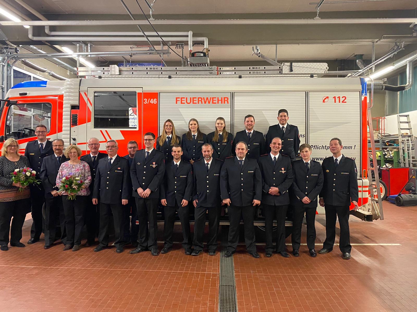 Beim Tagesordnungspunkt „Beförderungen, Ehrungen und Verabschiedungen“ konnte Christoph Wiechert 13 Kameraden einen neuen Dienstrang verleihen. Sebastian Kollmar und Lars Nieke wurden zu Feuerwehrmännern sowie Süleyman Bas, Denis Bengel, Sven Knöfel, Patrick Schäfer und Marcel Schmid zu Oberfeuerwehrmänner befördert. Patrizia Baur wurde zur Oberfeuerwehrfrau befördert und Jochen Baisch, Marcel Bauer, Björn Holz und Markus Spengler wurden zu Hauptfeuerwehrmännern befördert. Der stellvertretende Abteilungskommandant Jürgen König wurde zum Oberbrandmeister befördert.