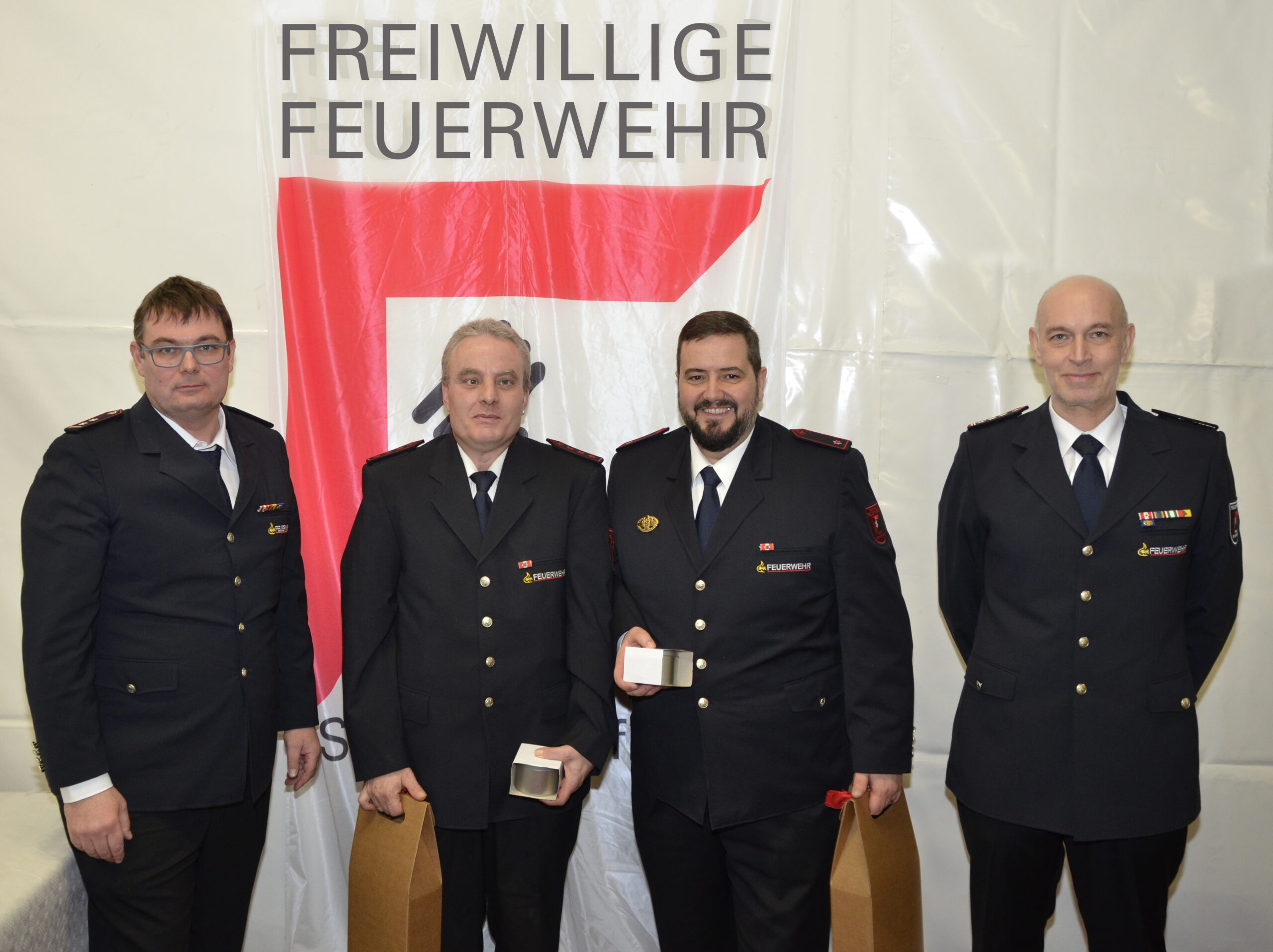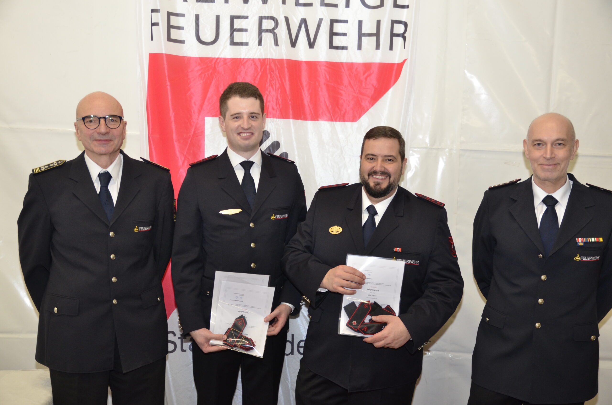 Für 25 Jahre Dienst am Nächsten würdigte Kommandant Sascha Luft das Engagement von Marcus Charton und Karlheinz Kemmler in einer kleinen Laudatio. Beiden wird bei der Jahreshauptversammlung der Feuerwehr Sindelfingen im März das Feuerwehrehrenzeichen des Landes Baden-Württemberg in Silber verliehen.