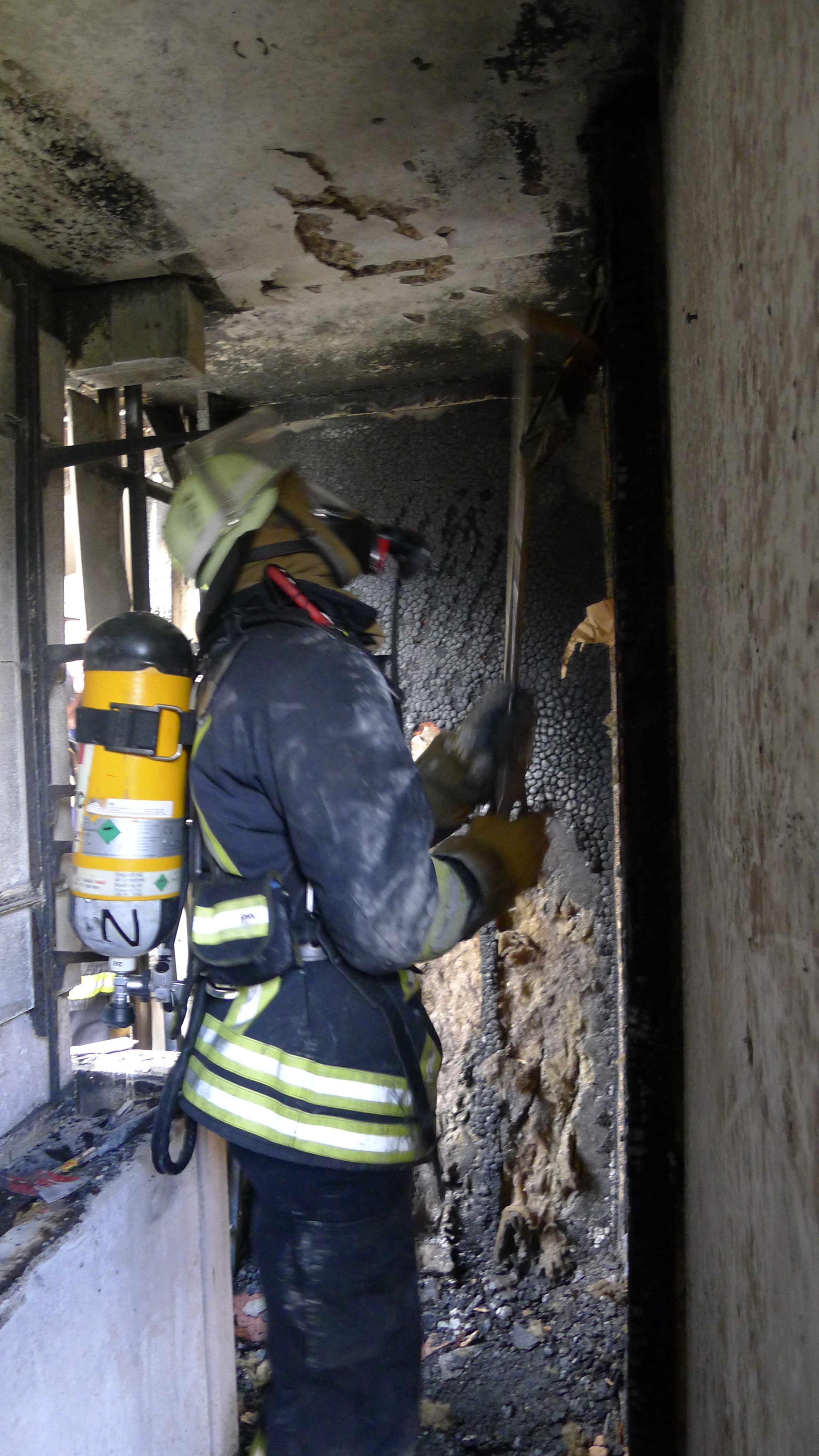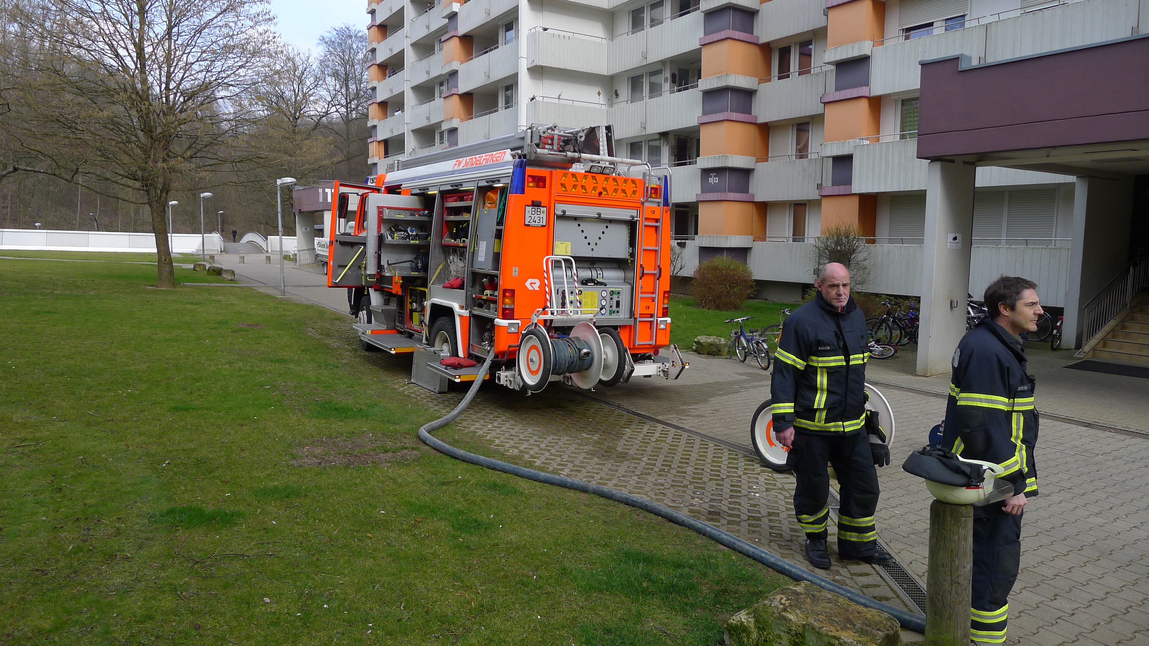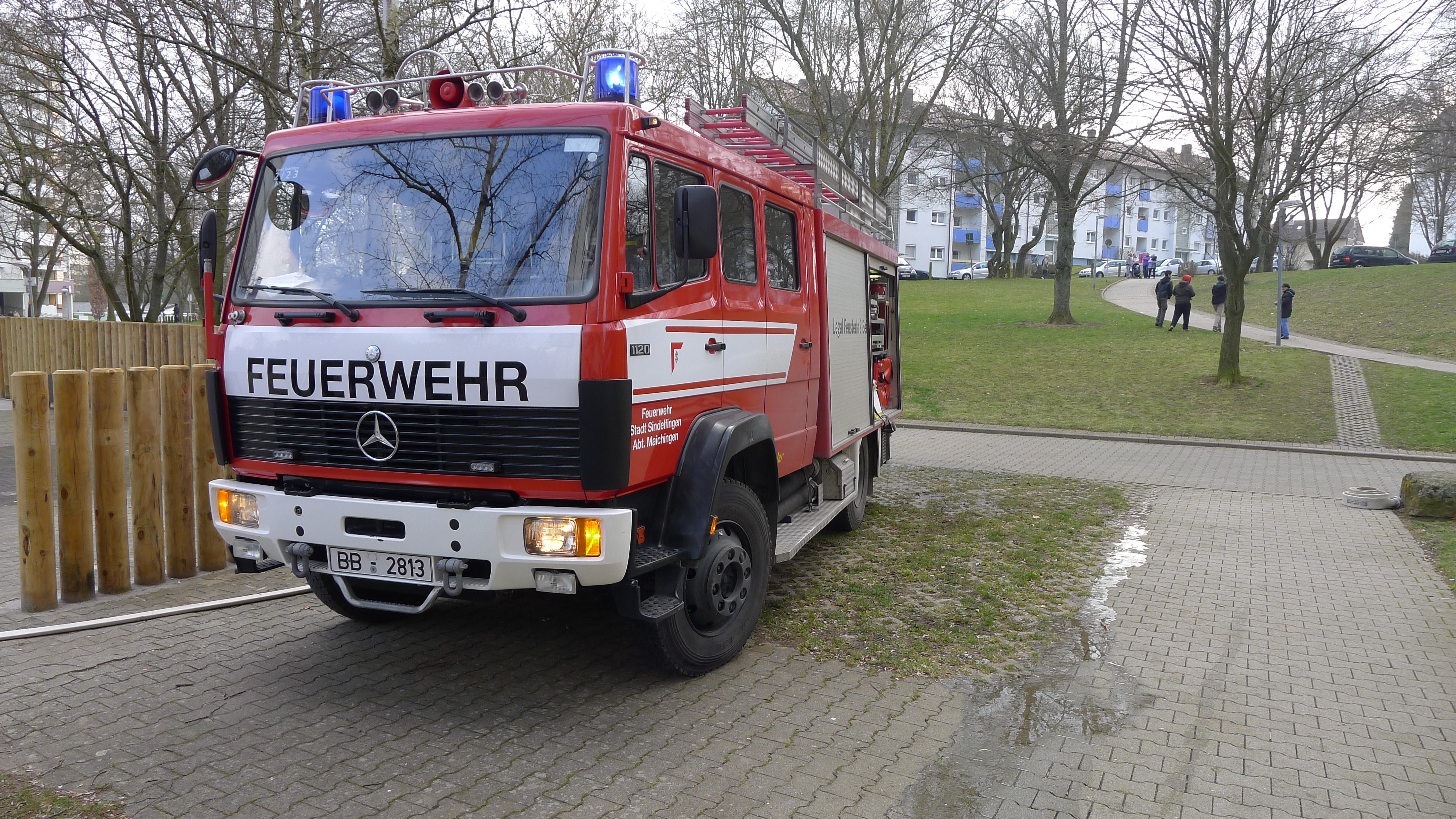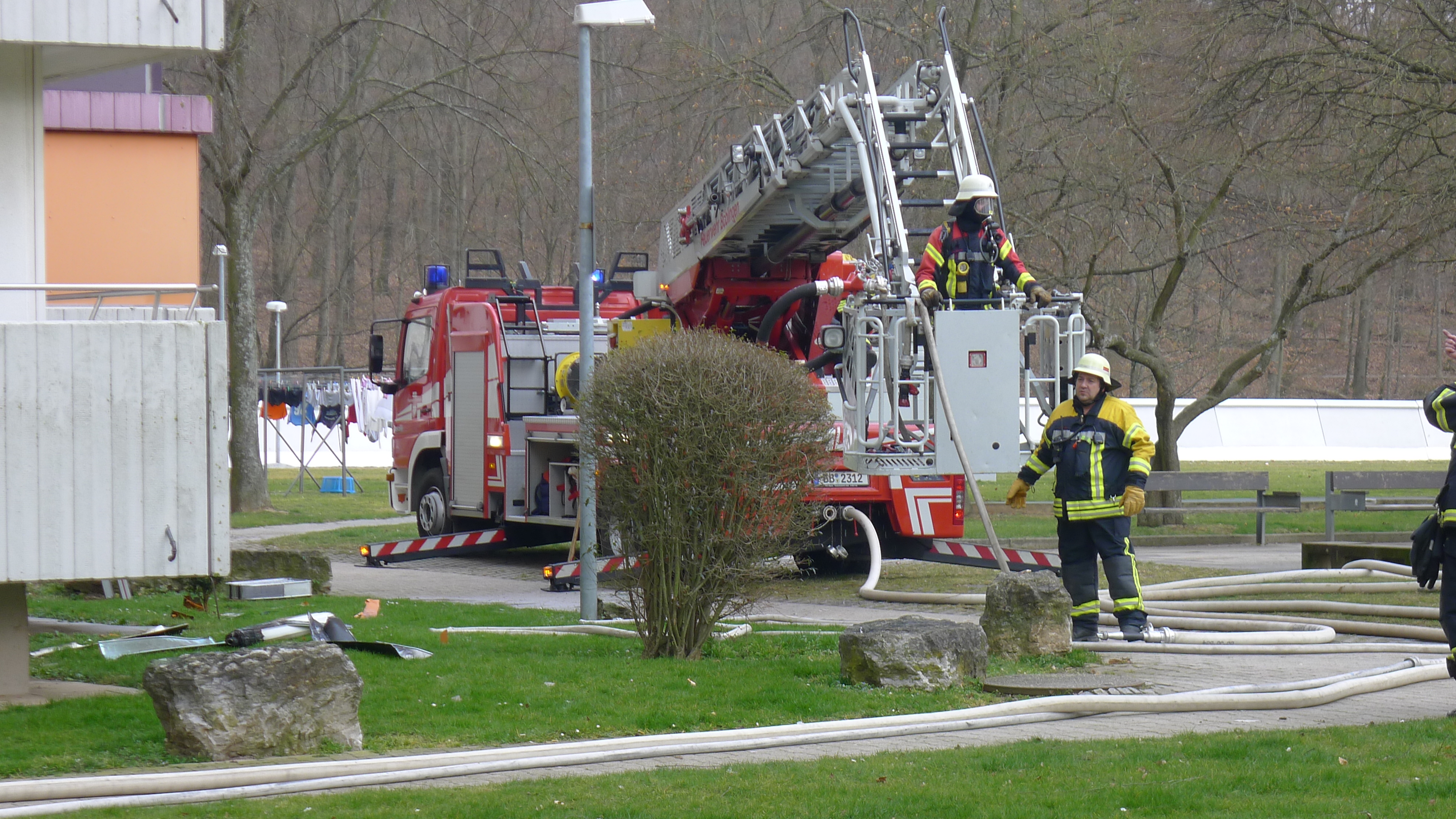Die Feuerwehr Sindelfingen wurde heute um 14:03 Uhr durch die integrierte Leitstelle Böblingen zu einem Brand in einem Hochhaus in der Friedrich-Ebert Straße in Sindelfingen alarmiert. Gemeldet wurde durch mehrere Notrufe eine Rauchentwicklung aus einer Wohnung im 2. OG mit 2 vermissten Personen. Vor Ort stellte sich der Brand eines Balkons mit der Gefahr des Überschlages der Flammen auf das 3. OG dar. Daraufhin wurde die Alarmstufe erhöht und weitere Feuerwehrkräfte alarmiert. Umgehend wurden die Flammen vom Boden und von der Böblinger Drehleiter von außen bekämpft. Parallel wurde die Menschenrettung über das Treppenhaus vorgenommen. Die Bewohner wurden bei den Nachbarn gefunden und mit einer leichten Rauchgasvergiftung dem Rettungsdienst übergeben. Das Feuer konnte in letzter Sekunde gelöscht werden bevor die Scheiben vollends geplatzt sind, denn die erste Schicht der Doppelverglasung war bereits geplatzt. Nach Belüftung und Kontrolle der Brandstelle mittels Wärmebildkamera konnte die Wohnung wieder freigegeben werden.