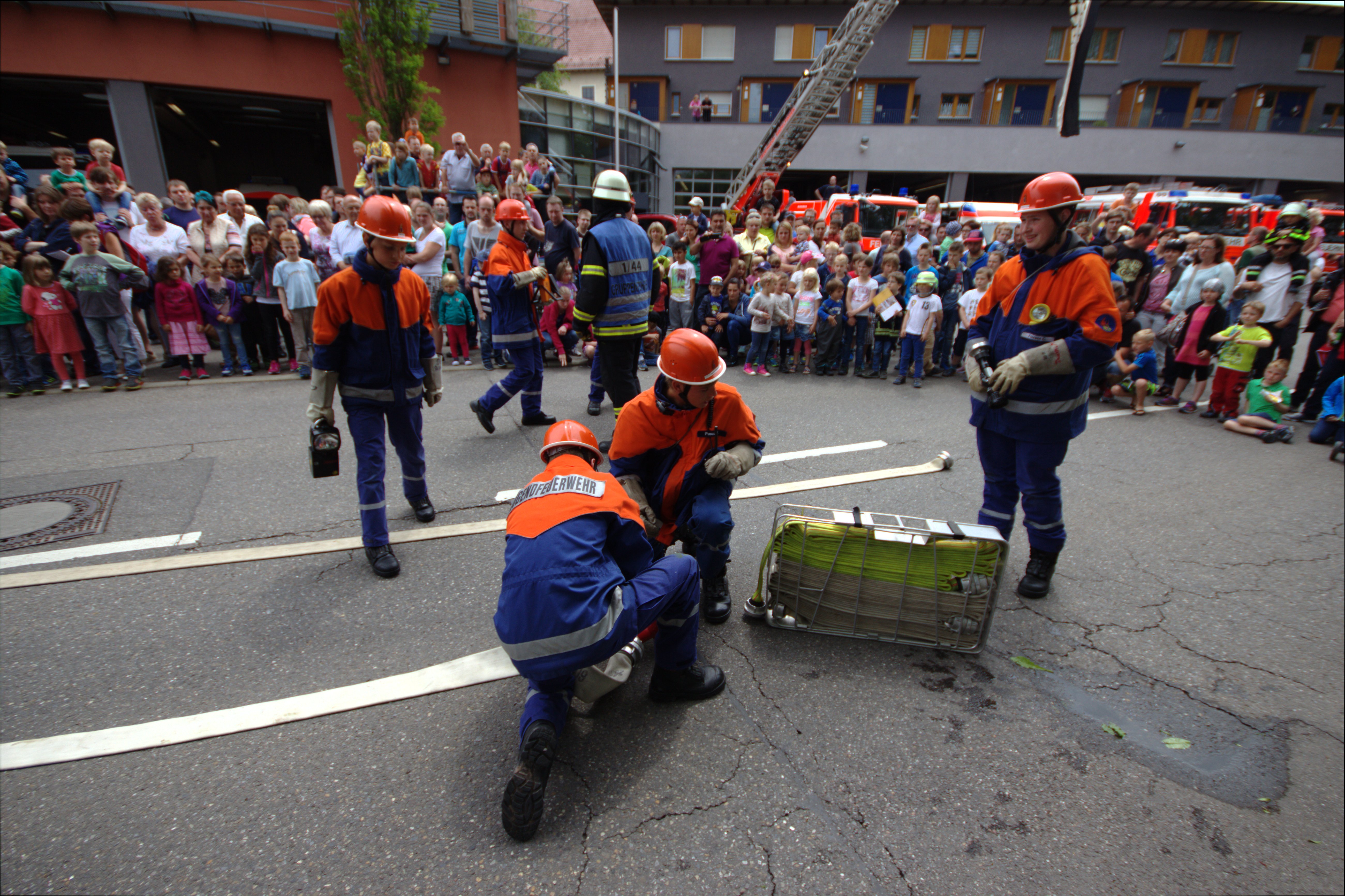 Die Jugendfeuerwehr Sindelfingen betrieb eine Spielstraße und diverse Verkaufsstände, das Highlight für die 10-16 Jahre alten Mitglieder war die Schauübung die sie vor gespanntem Publikum abhielten.