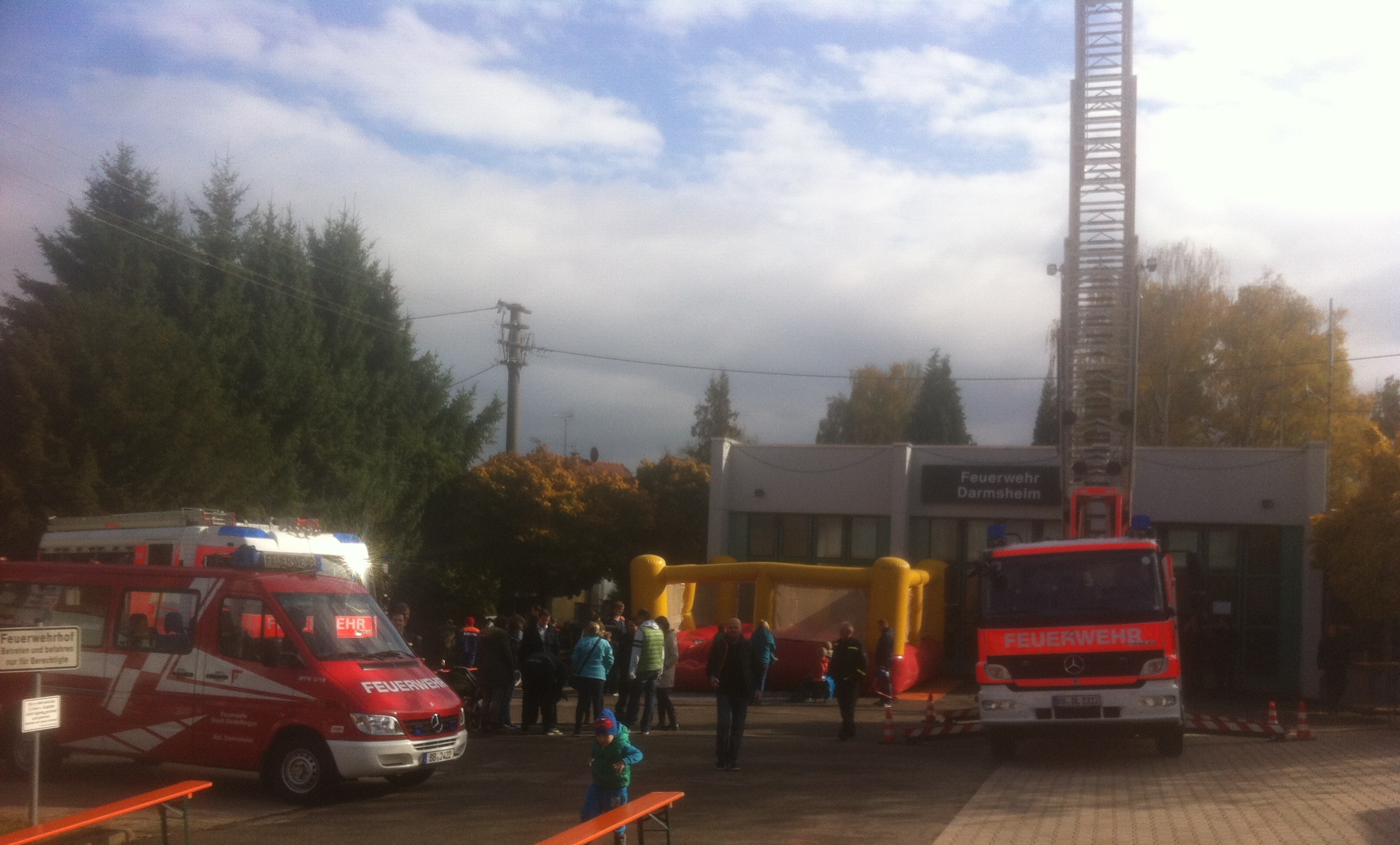 Die Abteilung Darmsheim bedankt sich bei den zahlreichen Bürgerinnen und Bürgern die sich am Sonntag den 25.10.2015 bei angenehmen Temperaturen ins Gerätehaus begeben haben. Vorallem haben wir uns über die vielen Kinder gefreut, die sich mit Kinderrundfahrten, Drehleiterfahrten, Hüpfburg und Wasserspielen stundenlang bespaßen konnten. Die selbstgemachten Linsen und der Spießbraten kamen ebenfalls sehr gut an, sodass unsere Bedienungen um die Mittagszeit gar arg ins Schwitzen gerieten. Bei dieser tollen Resonanz der Darmsheimer Bürger freuen wir uns schon auf den nächsten Tag der offenen Türe im Jahr 2017.