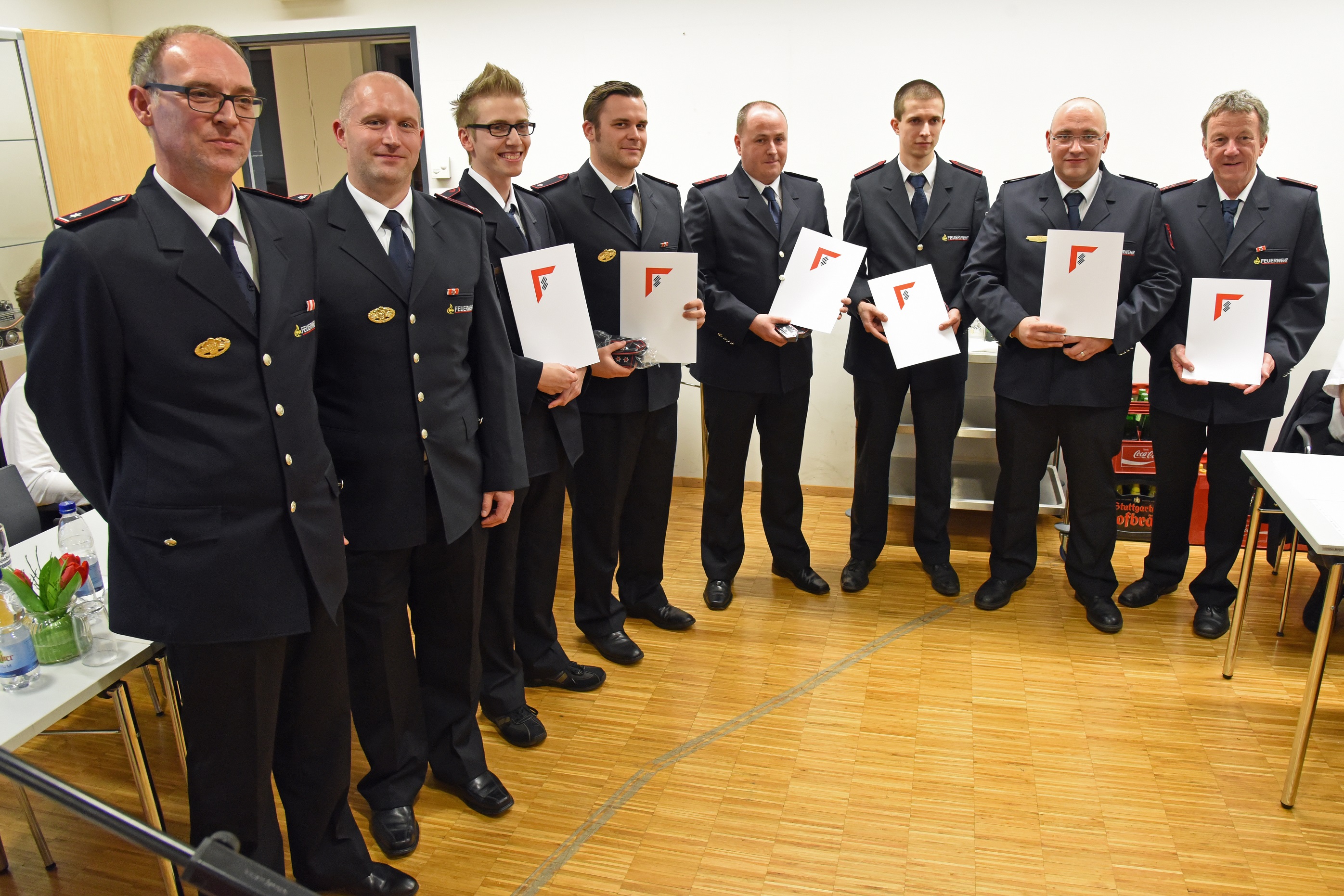Für 15 Jahre aktiven Feuerwehr-Dienst wurden Erik Wechselberger, Sven Petelik, Alexander Wick, Lorenz Jantos und Matthias Faulstich mit dem Feuerwehrehrenzeichen in Bronze geehrt.