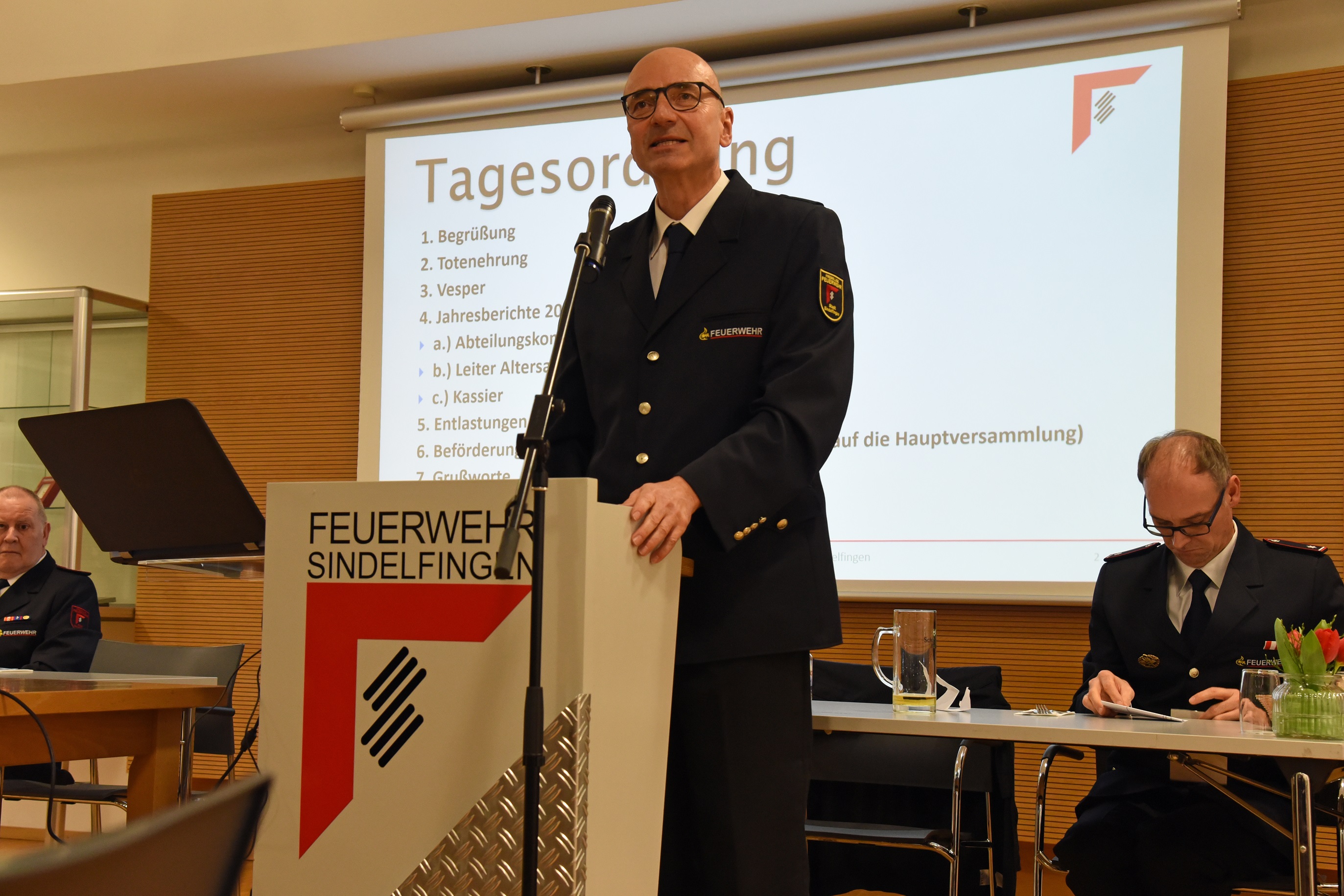 Zu Beginn begrüßte Rainer Just, Feuerwehrkommandant und Abteilungskommandant der Abteilung Sindelfingen, die Kameraden und Kameradinnen, sowie Gäste aus Politik, Behörden und Organisationen mit Sicherheitsaufgaben (BOS), der Presse und bedankte sich für die gute Zusammenarbeit.