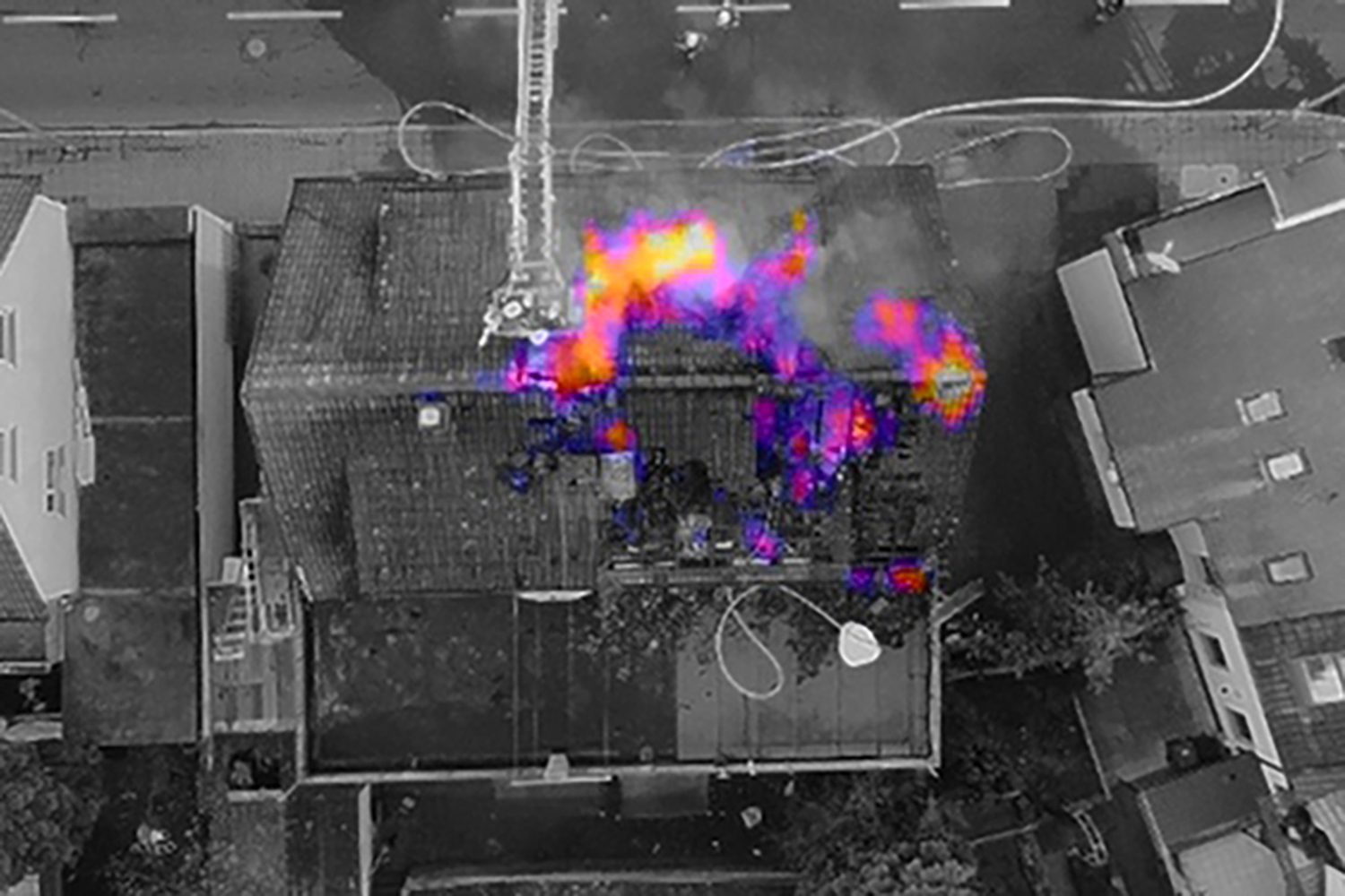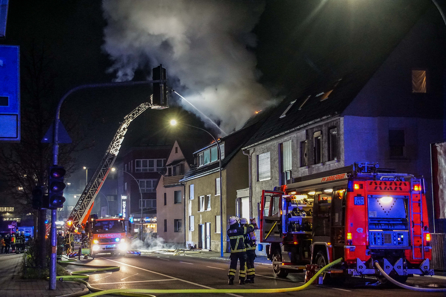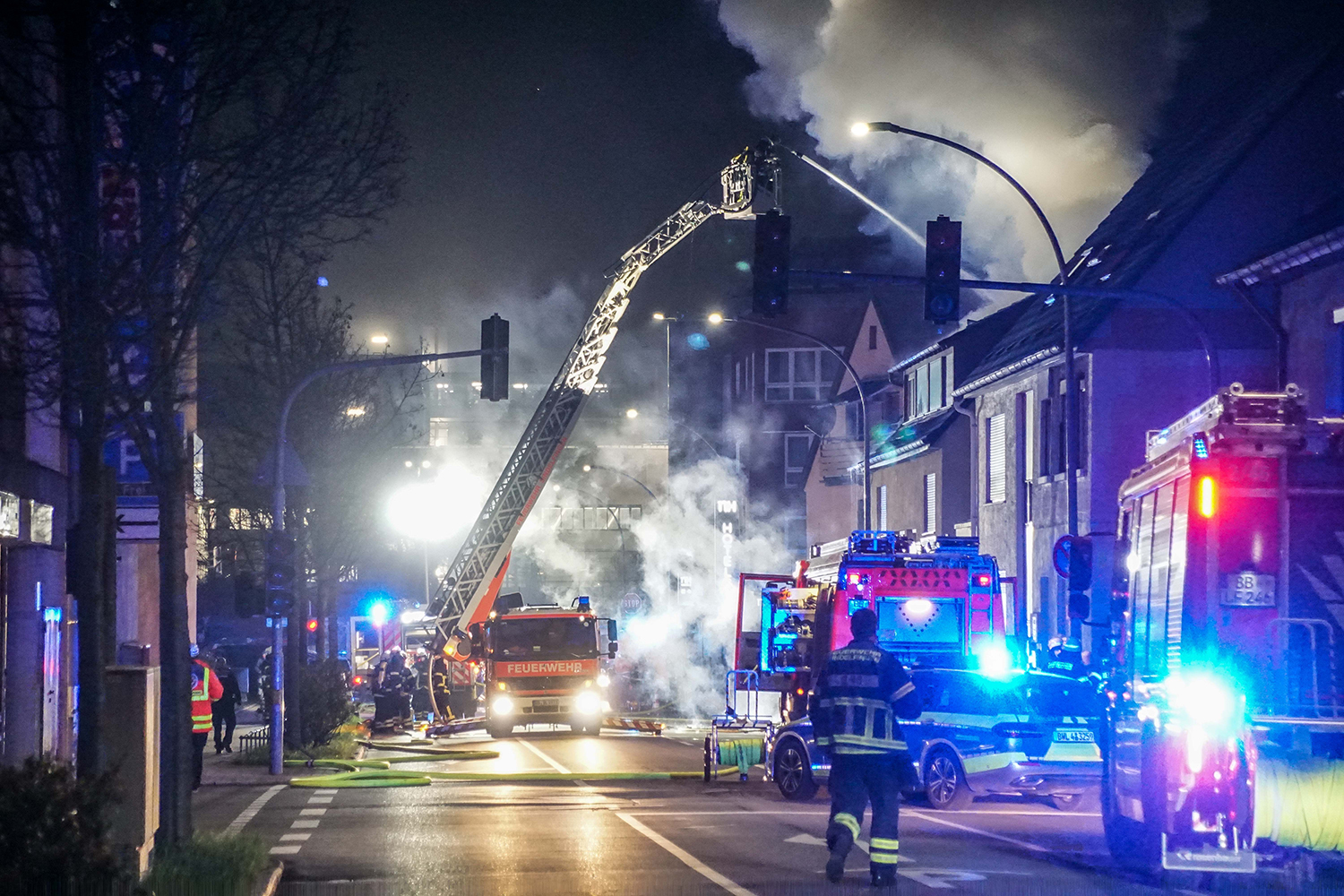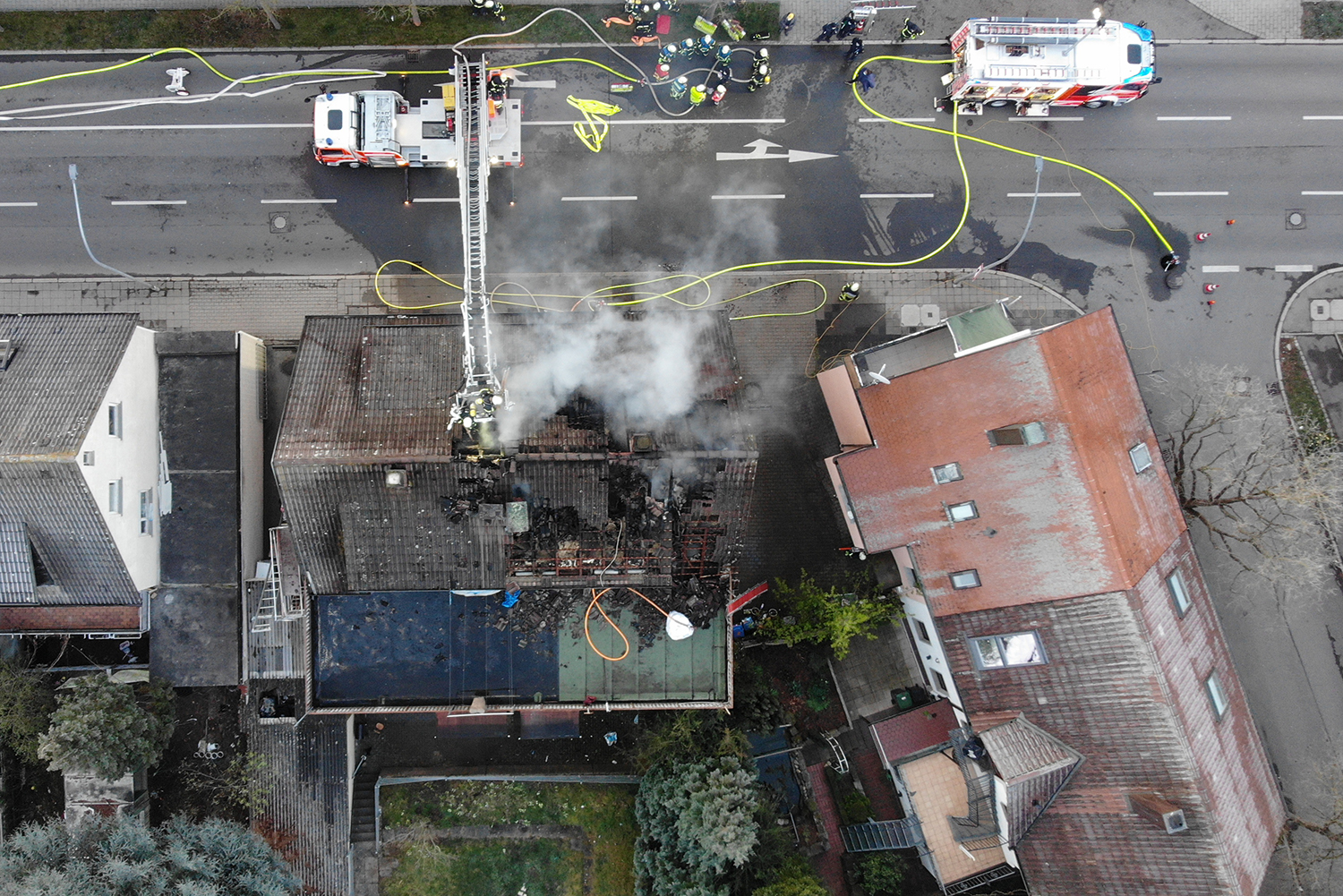 Die Feuerwehr Sindelfingen wurde kurz nach 5 Uhr in die Riedmühlestraße zu einem Gebäudebrand alarmiert. Nach Eintreffen der ersten Einsatzkräfte konnte die Lage bedingt bestätigt werden. Im Dachbereich konnte ein geschlossener Dachstuhlbrand mit starker Rauchentwicklung vorgefunden werden, der sich nach kurzer Zeit zu einem offenen Dachstuhlbrand ausgebreitet hat. Umgehend eingeleitete Löschmaßnahmen mit 2 Strahlrohren und dem Wendestrahlrohr der Drehleiter zeigten schnell Erfolg. Die 20 evakuierten Personen des Brandhauses wurden im nahegelegenen NH-Hotel untergebracht und durch den Rettungsdienst und die DRK Ortsvereine Sindelfingen und Maichingen versorgt. Hierbei reagierte das Hotel schnell und stellte die Räumlichkeiten für die Betreuung zur Verfügung. Im weiteren Einsatzverlauf wurde die Dachhaut geöffnet und das Feuer weiter bekämpft. Um Luftmessungen in der Umgebung durchzuführen wurde die Feuerwehr Herrenberg parallel zu der Feuerwehr Sindelfingen mit dem Gerätewagen Messtechnik alarmiert. Die Luftmessungen waren aber alle negativ. Die Nachlöscharbeiten zogen sich über einen längeren Zeitraum hin, da das Dach fast vollständig abgetragen werden musste. Um Glutnester aufzuspüren kam die Drohne der Feuerwehr zum Einsatz. Hierbei konnten Bildaufnahmen mit einer montierten Wärmebildkamera gemacht werden, die die Glutnester schnell sichtbar machen konnte. Da das Gebäude bis auf weiteres nicht mehr bewohnbar ist, wurde von der Stadt Sindelfingen in Zusammenarbeit mit den Wohnstätten Sindelfingen, Notunterkünfte gesucht und eingerichtet. Hierbei verlief die Zusammenarbeit reibungslos und unkompliziert. Auch Oberbürgermeister Dr. Bernd Vöhringer war an der Einsatzstelle und machte sich ein Bild über die Lage. Polizeiliche Ermittlungen zur Brandursache stehen zum derzeitigen Zeitpunkt noch aus. Rainer Just, Feuerwehrkommandant der Feuerwehr Sindelfingen, lobte die schnelle und reibungslose Zusammenarbeit aller Einsatzkräften an der Einsatzstelle.