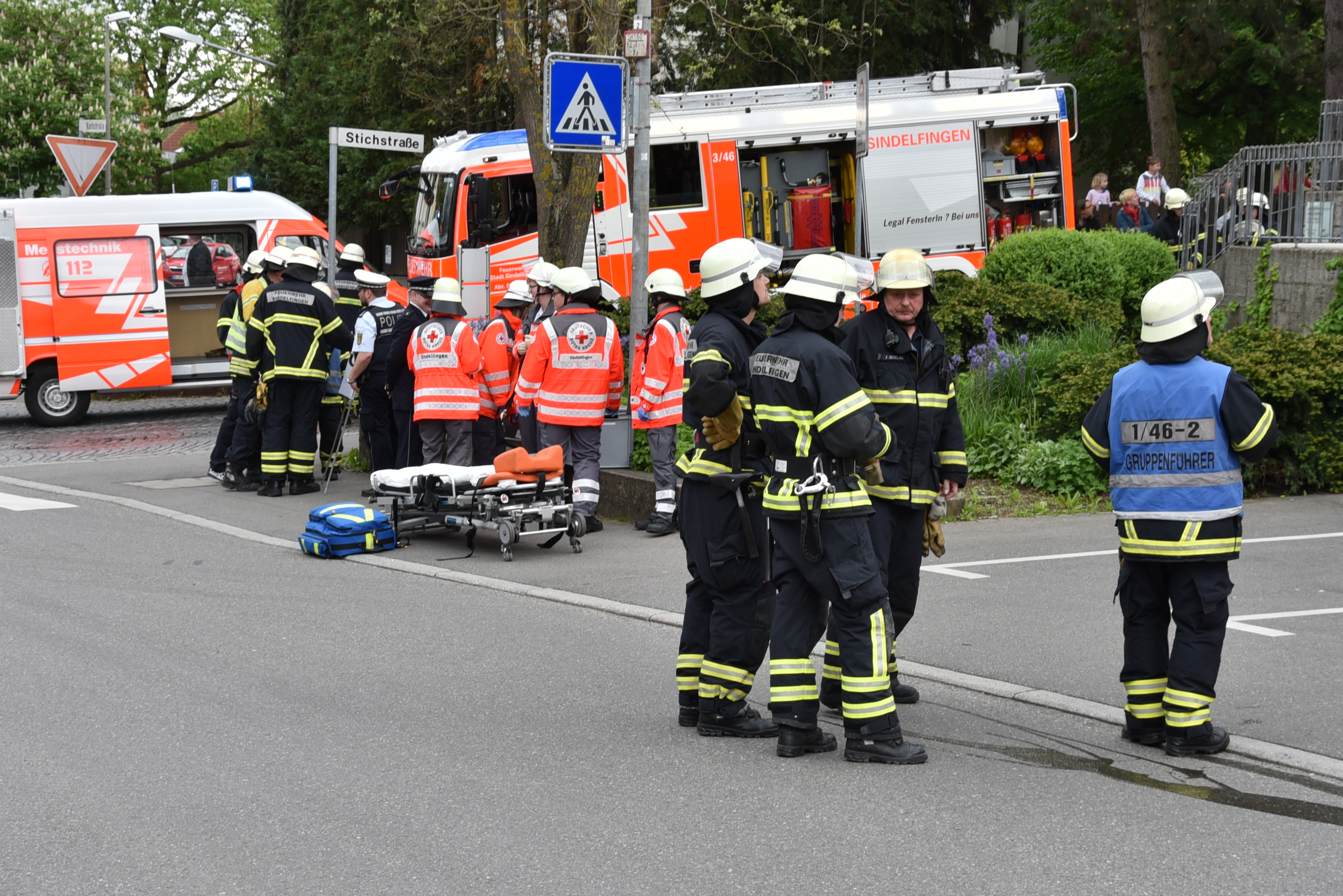 Die Gesamtwehr der Feuerwehr Sindelfingen rückt dazu mit einem Löschzug bestehend aus einem Einsatzleitwagen und drei Löschfahrzeugen sowie einer Drehleiter aus. Dieser Löschzug besteht aus allen Abteilungen und wird tagsüber zu allen Brandeinsätzen der Stufe 2 „Brand innerorts“ alarmiert um den Personalbedarf vor allem tagsüber zudecken. Zusätzlich wurden sie unterstützt durch drei weitere Löschfahrzeuge aus Maichingen, Darmsheim und der Jugendfeuerwehr. Damit die Versorgung der Einsatzkräfte mit Schläuchen und Atemschutzgeräten sichergestellt ist, wurde außerdem der Abrollbehälter mit Atemschutz sowie ein Schlauchwagen angefordert. Das DRK versorgte mit insgesamt 15 Helfern und 5 Fahrzeugen die zahlreichen Personen. Die Polizei unterstütze die Feuerwehr mit insgesamt 2 Streifenwägen und 2 Einsatzkräfte.