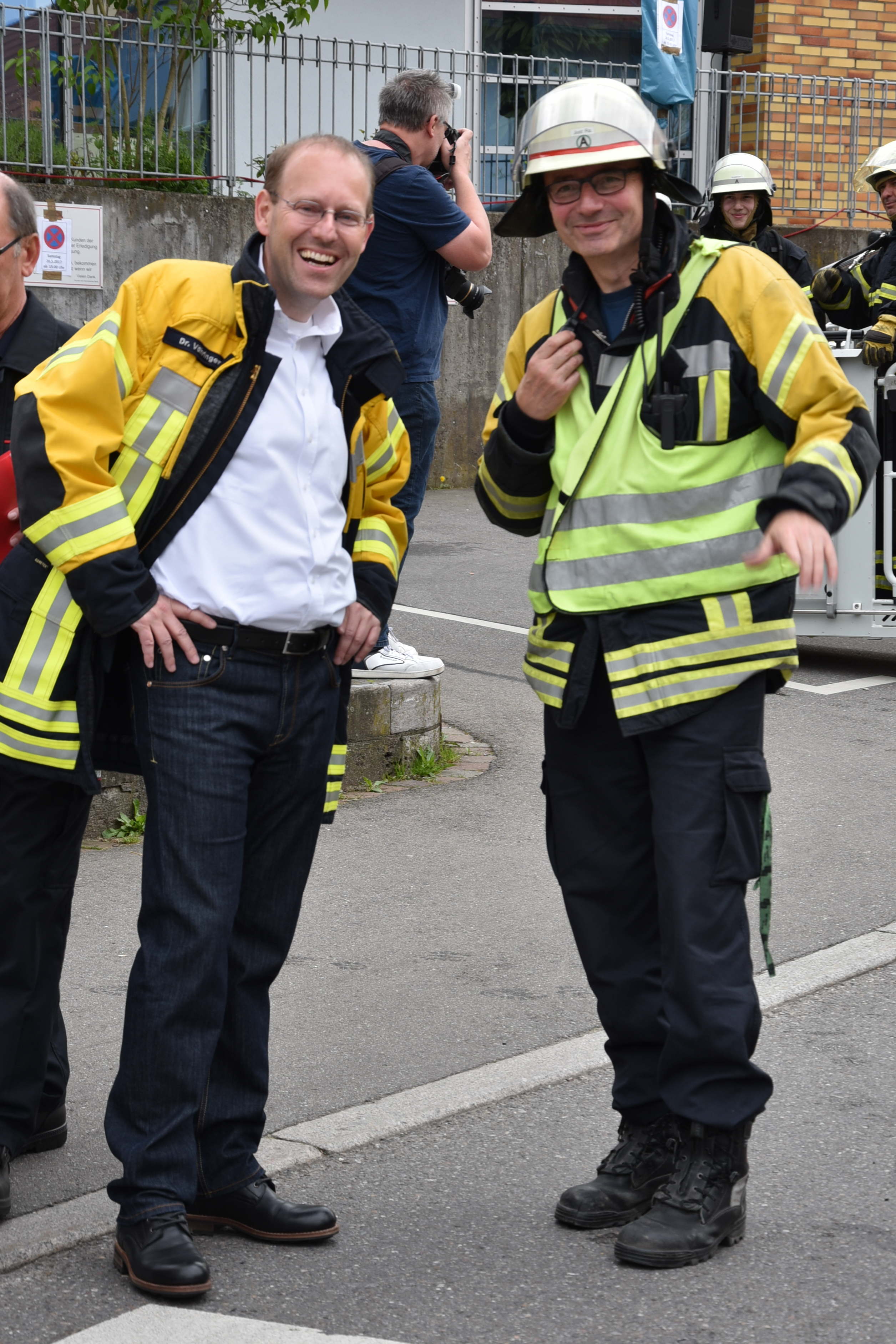 Alles in allem, dauert die Hauptübung rund 45 Minuten. Eine Dreiviertelstunde, die der Bevölkerung, aber auch der anwesenden Politik ein Einblick in die Leistungsstärke der heute rund 80 anwesenden Kräfte der Feuerwehr beweist. Das Feedback von Stadtbrandmeister Wolfgang Finkbeiner und Oberbürgermeister Dr. Bernd Vöhringen viel am Ende der Übung durchweg positiv aus.