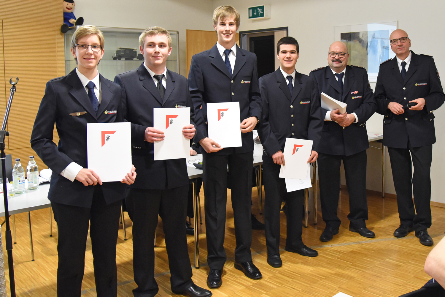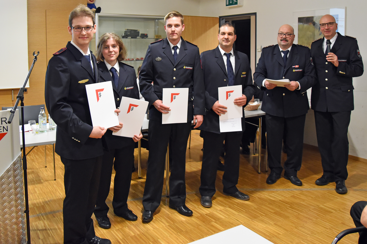 Zum Oberfeuerwehrmann / frau wurde Oliver Erhardt, Florian Golze, Pascal Jantos, Beniamino Pardo, Oliver Stein, Marc Swist, und Priscilla Wölbling befördert.