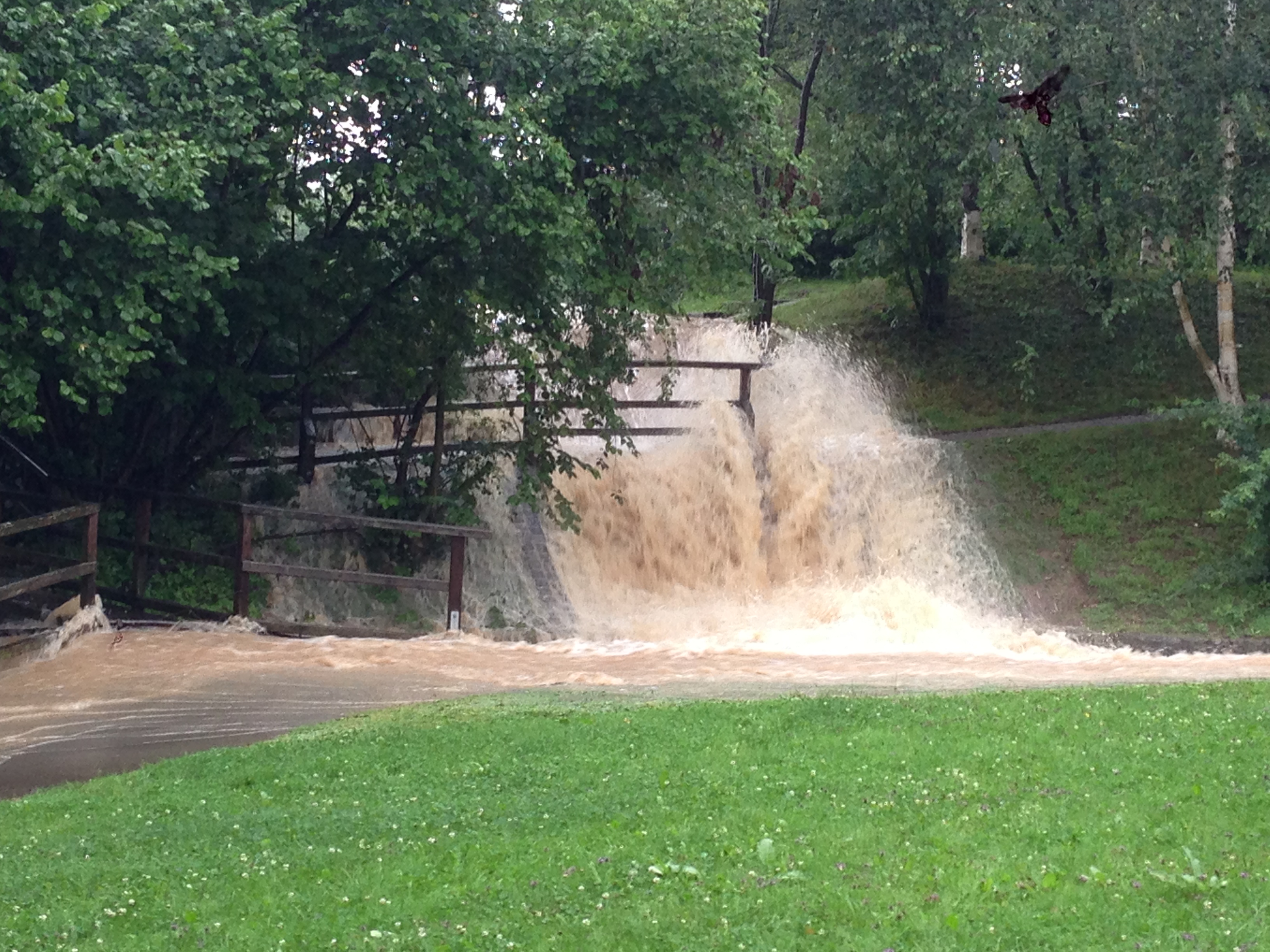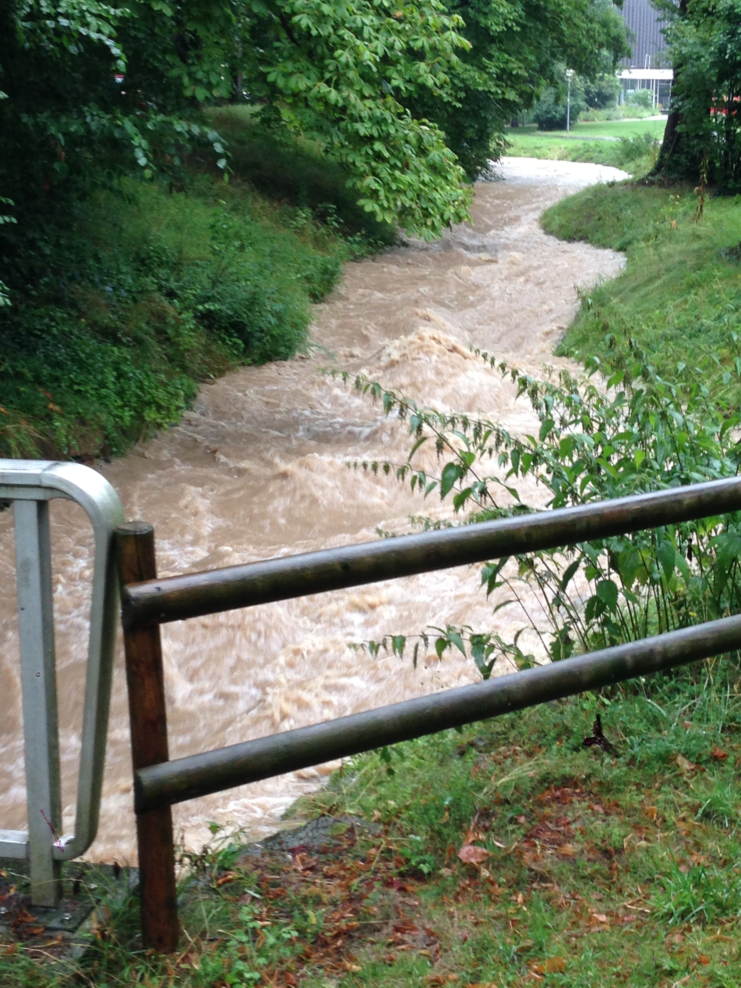 Dramatisch auch die Lage am Klostersee und dem Sommerhofenpark. Der See lief komplett und sturzbachartig über. Weite Teile des Sommerhofenparks waren ebenfalls überschwemmt. Durch den Wasserabfluss aus dem Klostersee stand die Seestraße so stark unter Wasser, dass sie gesperrt werden musste. Der Verkehr staute sich rund um die Sindelfinger Innenstadtbereich. Sandsäcke wurden gestapelt, um anliegende Tiefgaragen zu schützen und das Wasser kontrolliert in den Bachlauf abzuleiten.