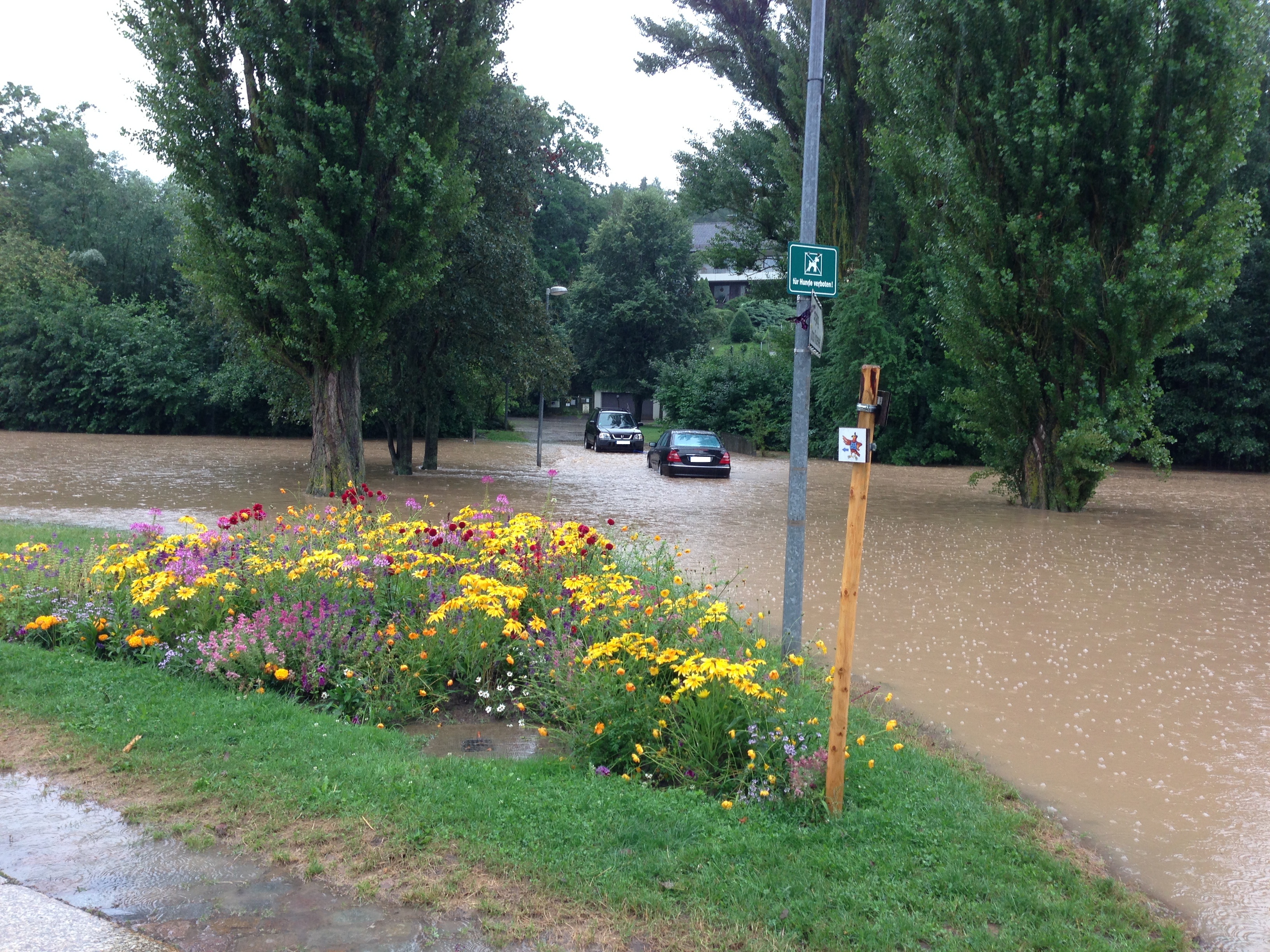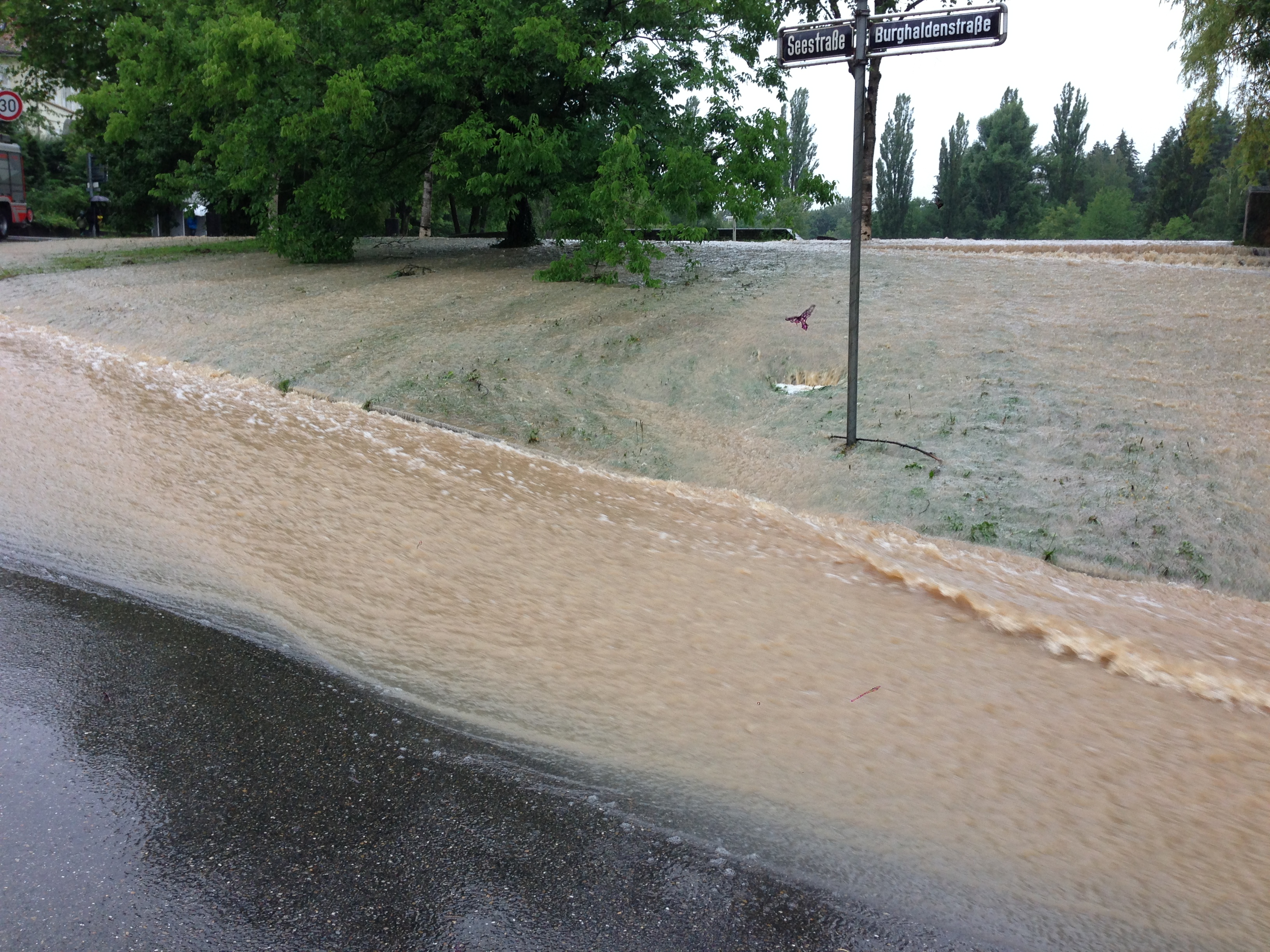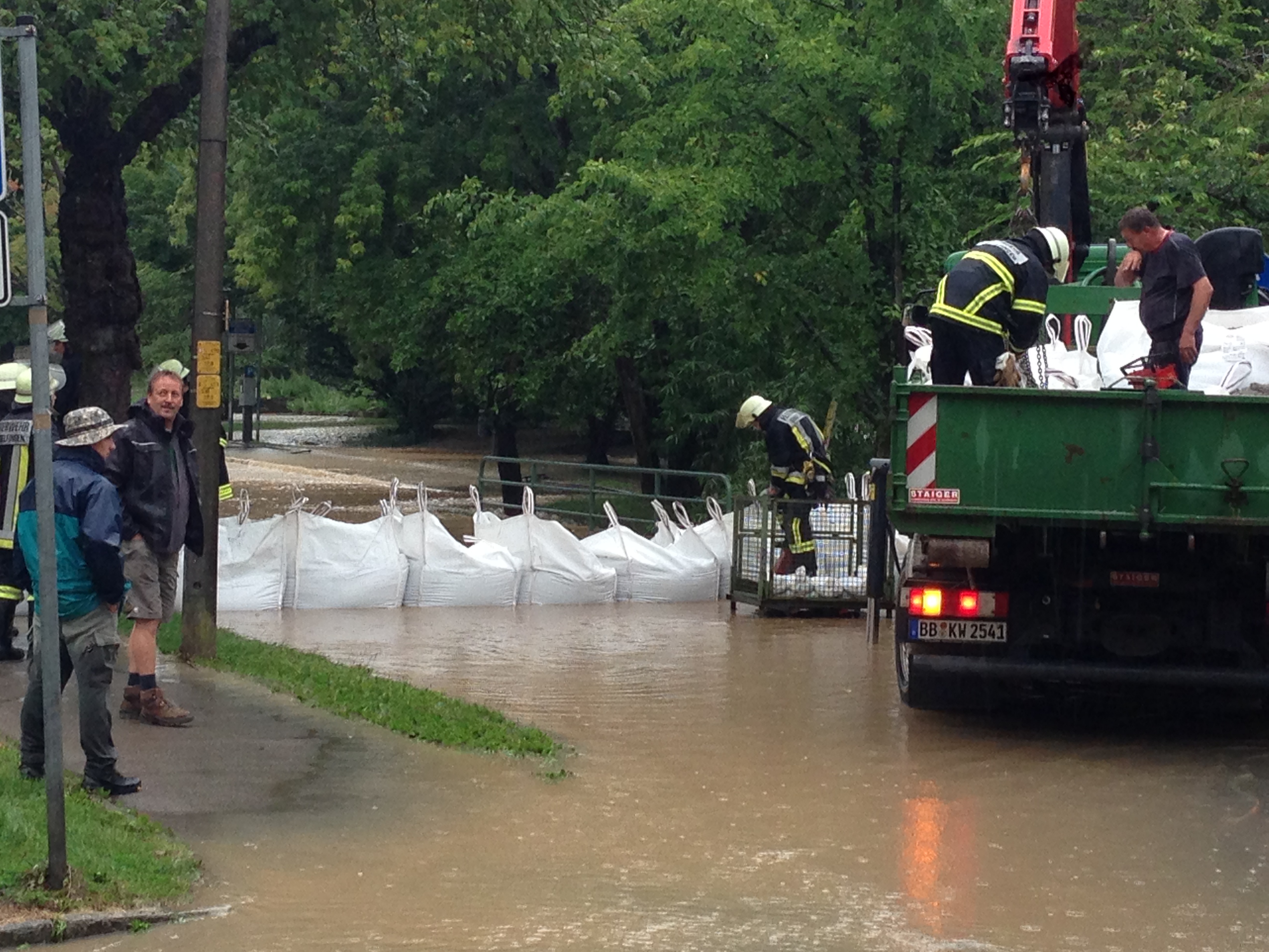 Unterstützung erhielt man von der Daimler AG und der Fa. Walker Gartenbau, die mit Sandsäcken und einem Kran halfen. Auch das THW war mit zwei Großpumpen vor Ort, um die vollgelaufene Tiefgarage in der Ernst-Barlach-Straße leer zu pumpen.