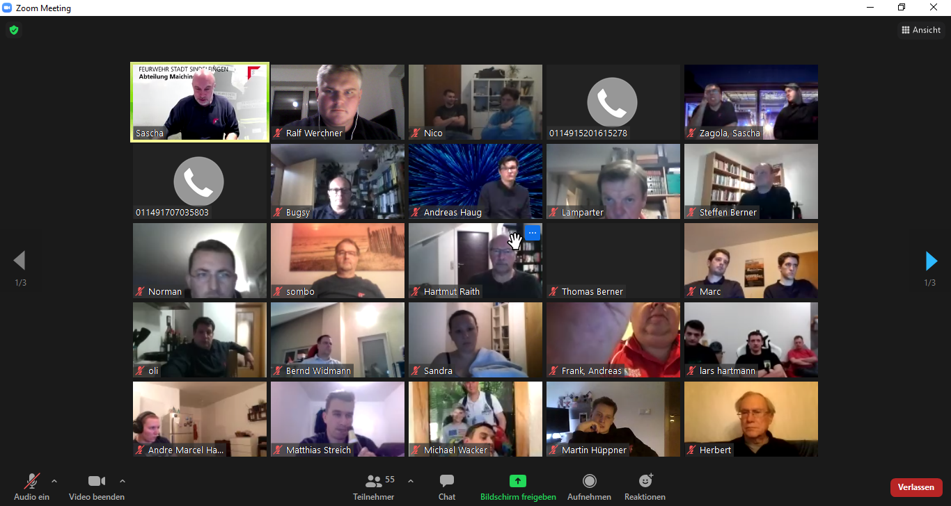Fazit: Es funktioniert auch mit „etwas mehr an“ Teilnehmern. 57 waren live dabei, als Abteilungskommandant Sascha Luft zusammen mit den Zugführern und Sachgebietsleitern das Jahr 2020 Revue passieren ließ. Und das in guter Tradition. Seit vielen Jahren gehört dieser Feedbackabend als fester Bestandteil zum Dienstjahr dazu. Wie waren Übungsbetrieb, Einsatzabarbeitung und Kameradschaft? Was war gut? Was war weniger gut und sollte daher verbessert werden? Doch anstatt, dass sich die Aktiven und die Kameraden der Altersabteilung im Gerätehaus treffen, fand der Austausch erstmals online statt. Da die für den Januar geplanten Abteilungsversammlungen nicht stattfinden können, ging der virtuelle Dienst etwas länger als sonst. Ergebnis des Abends: Trotz der widrigen, pandemiebedingten Umstände läuft es rund in Maichingen. Natürlich fehlt allen die Präsenz, die Kameradschaft und der persönlich Austausch. Dennoch hielten auch in einem seltsamen und für eine Organisation wie die Feuerwehr schwerem Jahr, alle zusammen. Die Mannschaft hat Verständnis für die strikten Maßnahmen und trägt diese mit. Das verdient allergrößten Respekt. In Maichingen geht man gestärkt aus der Krise, aber dennoch auch mit großer Hoffnung auf eine Entspannung der Lage in ein neues Jahr 2021.