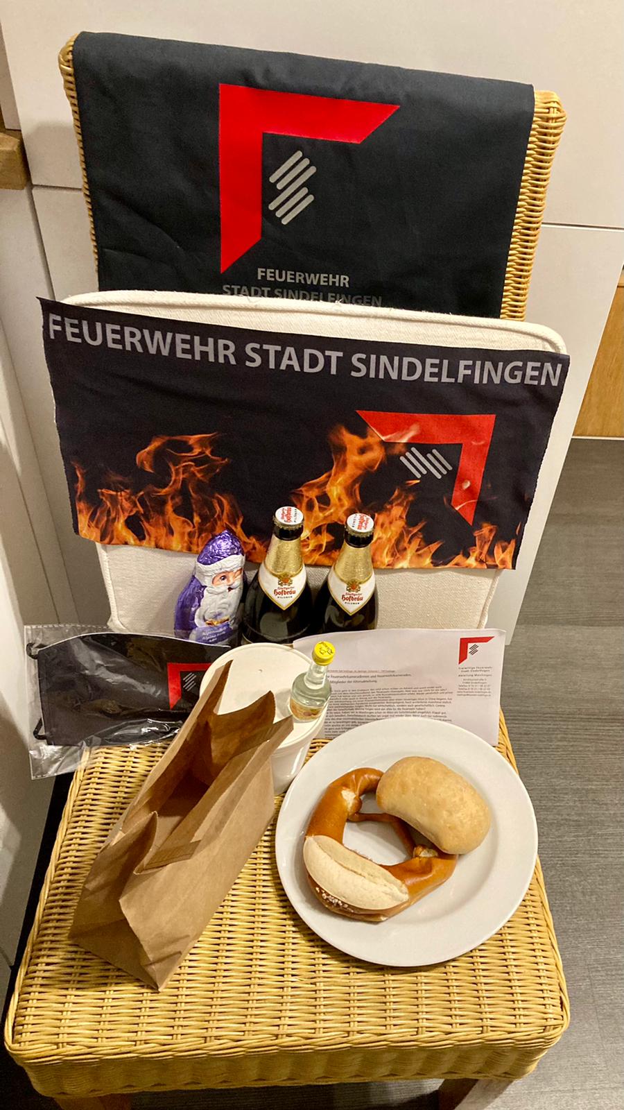 Als kleines Weihnachtspräsent hat der Abteilungsausschuss Carepakete an alle Kameradinnen und Kameraden verteilt. Neben „saisonalen“ Artikeln wie einer Mund-Nasen-Maske und einem Schaltuch im Feuerwehr Sindelfingen-Design gab es auch ein Vesper – denn das gehört traditionell zum Jahresabschlussdienst und durfte auch im Coronajahr nicht fehlen.