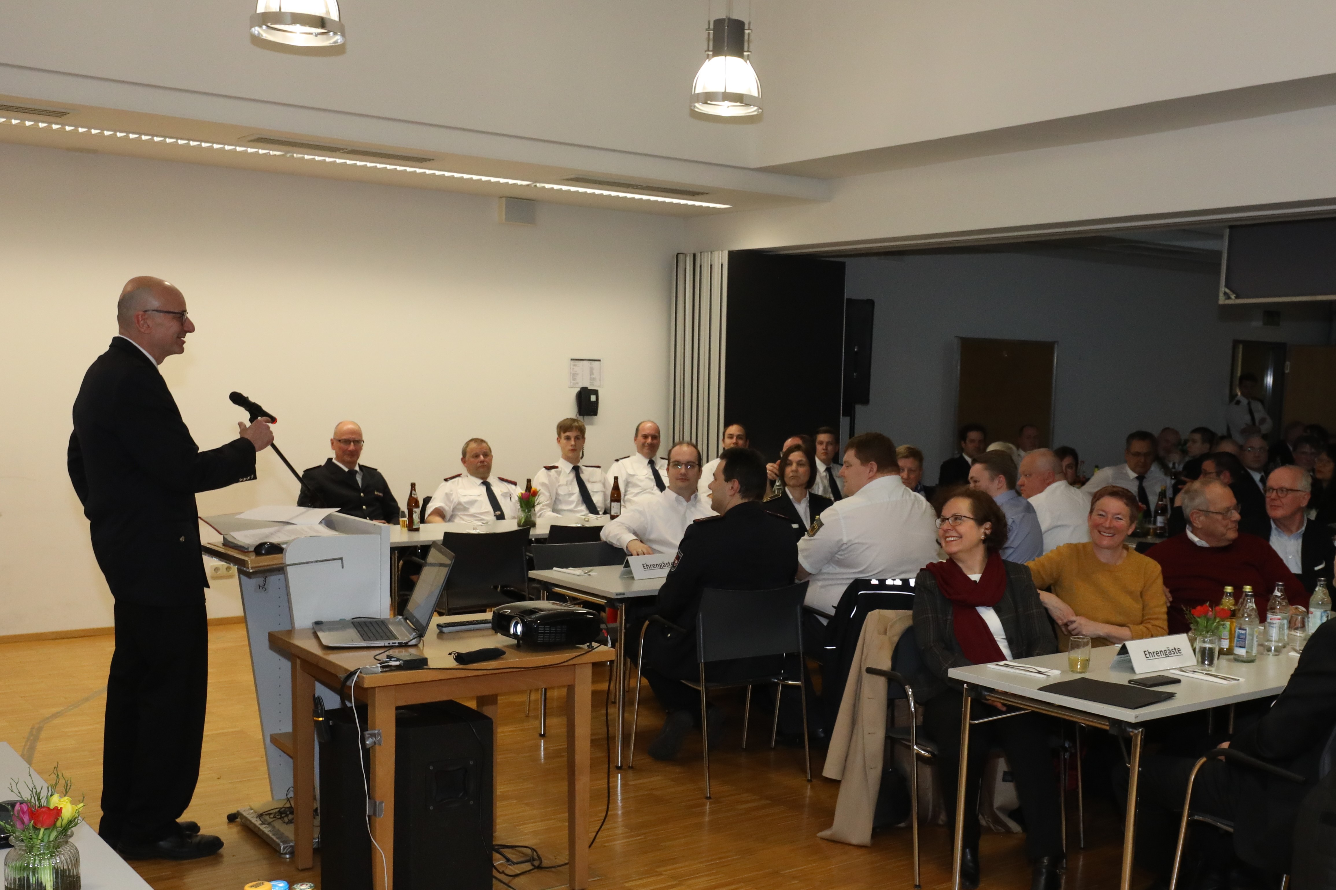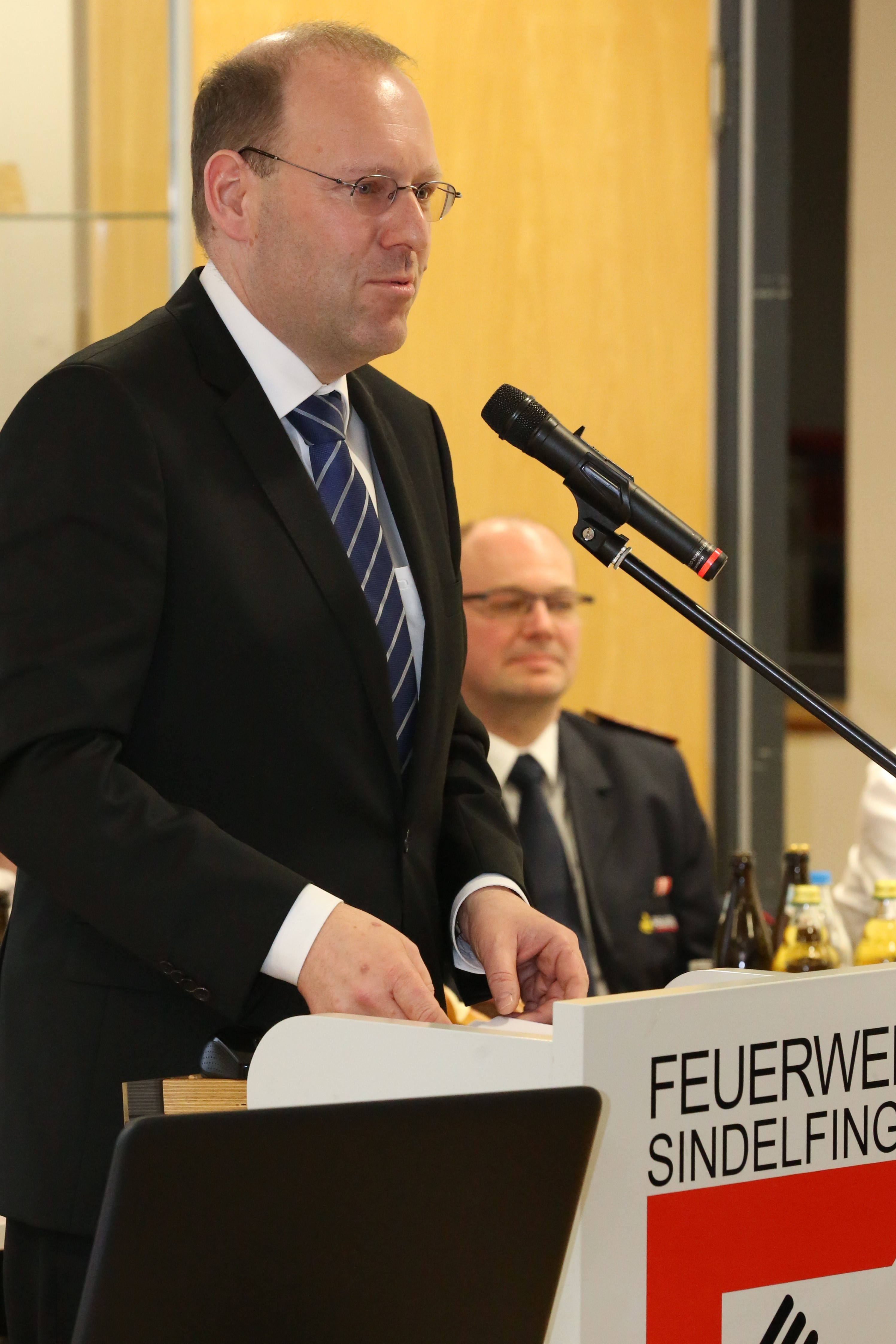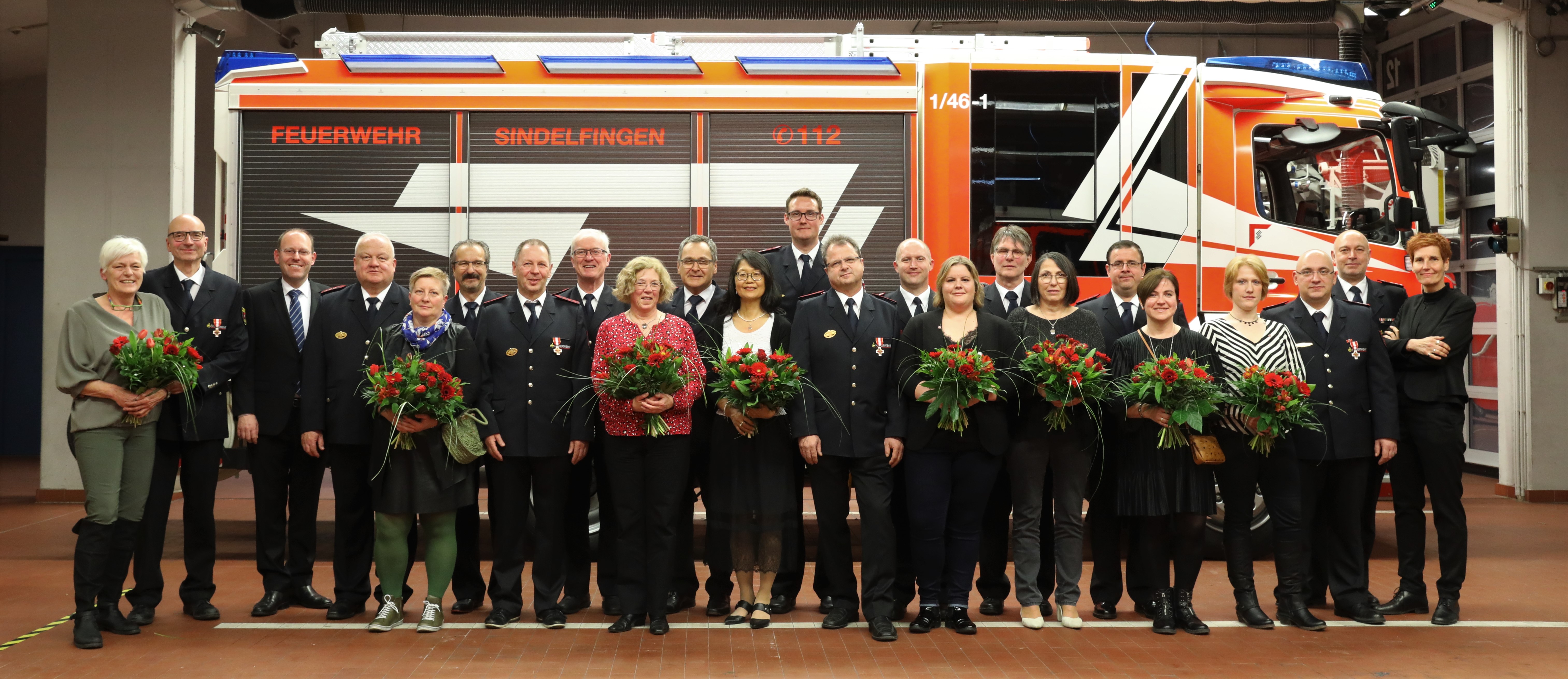 Den schönsten Teil der Jahreshauptversammlung konnte Darmsheims Abteilungskommandant Christoph Wiechert leiten. Es standen nämlich auch zahlreiche Ehrungen an. Der Mensch im Mittelpunkt, der Mensch in Anerkennung und der Mensch in Respekt und Würdigung, so kann man die Ehrungen zusammenfassen. Das Feuerwehrehrenzeichen in Silber für 25 Jahre aktiven Feuerwehrdienst erhielten Roman Dürr und Alexander Hartmann. Dieselbe Auszeichnung und die Ehrenmitgliedschaft der Feuerwehr Sindelfingen erhielten Thomas Schnaufer und Uwe Zoller. Ganze 40 Jahre aktiv und somit Träger des Feuerwehrehrenzeichens in Gold bekommen Erwin Jungbeck, Rainer Köberling, Gerd Körber, Walter Müller, Gerhard Schneider, Jörg Spengler und nicht zuletzt Sindelfingens Kommandant Rainer Just selbst. Den Geehrten zu danken und sie zu würdigen ließen sich weder Sindelfingern OB Vöhringer noch Kreisbrandmeister Guido Plischek nehmen. Langjähriges, ehrenamtliches Engagement sei heutzutage leider alles andere als selbstverständlich. Umso mehr würdigten beide nicht nur die beeindruckende  Leistungsbilanz der Sindelfinger Feuerwehr in Ihrer Gesamtheit aus Hauptamt, Ehrenamt, Jungendfeuerwehr und Altersabteilung sondern insbesondere auch die langjährige Verbundenheit der verdienten und geehrten Kameraden.