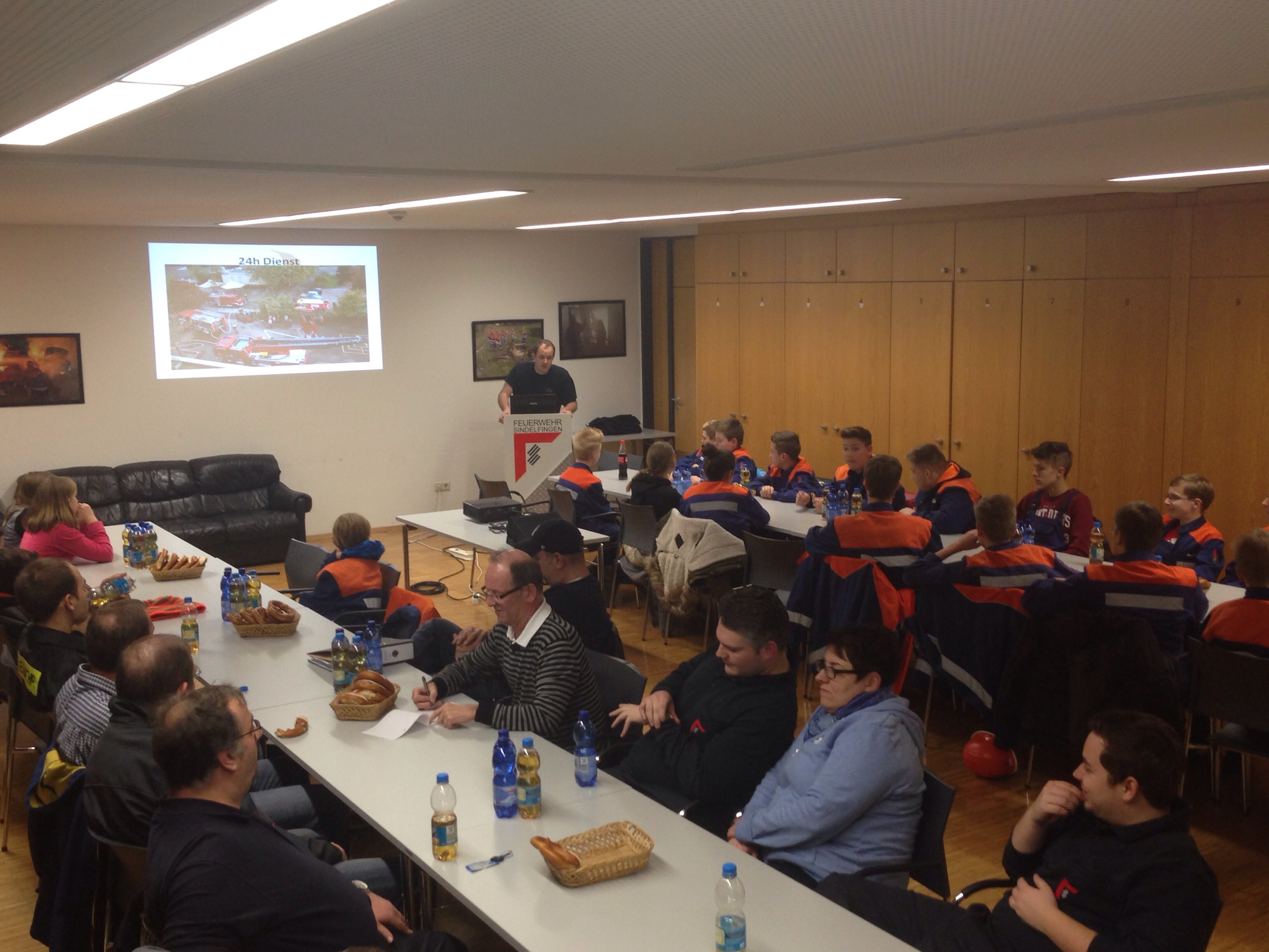 „Bis zu den dem Sommerferien war es ein verhältnismäßig ruhiges Jahr. Wir nahmen am Kreispokalwettbewerb in Weissach und an der Kreisjugendverbandsversammlung teil.“ Mit diesen Worten begann der Jahresrückblick von Jugendwart Tobias Pfeiffer für das Jahr 2014. So ruhig sollte es aber nicht bleiben: Die zweite Hälfte des Jahres war voll gespickt mit Terminen für die Jugendlichen und ihre Betreuer. An 5 aufeinander folgenden Wochenende war die Jugendfeuerwehr an Aktionen und Aktivitäten der Stadt oder der Feuerwehr beteiligt oder führte eigene Aktivitäten durch. Zu den schon selbstverständlich gewordenen Terminen gehören der Feuerabend sowie der Weltkindertag. Ebenso unterstützte man die Abteilungen Sindelfingen und Maichingen bei deren Tagen der offenen Tür. Absolutes Highlight war der 24h-Dienst. Vom 11. auf den 12. Oktober fand dieser in der Sindelfinger Feuerwache statt. Dabei warteten zum fünften Mal insgesamt viele verschiedene Szenarien auf die Jugendlichen und deren Betreuer, die selbst nichts über die geplanten „Einsätze“ wussten. Dafür war ein eigenes Team von Jugendleitern quer durch das Stadtgebiet unterwegs und bereitete die Aktionen vor.