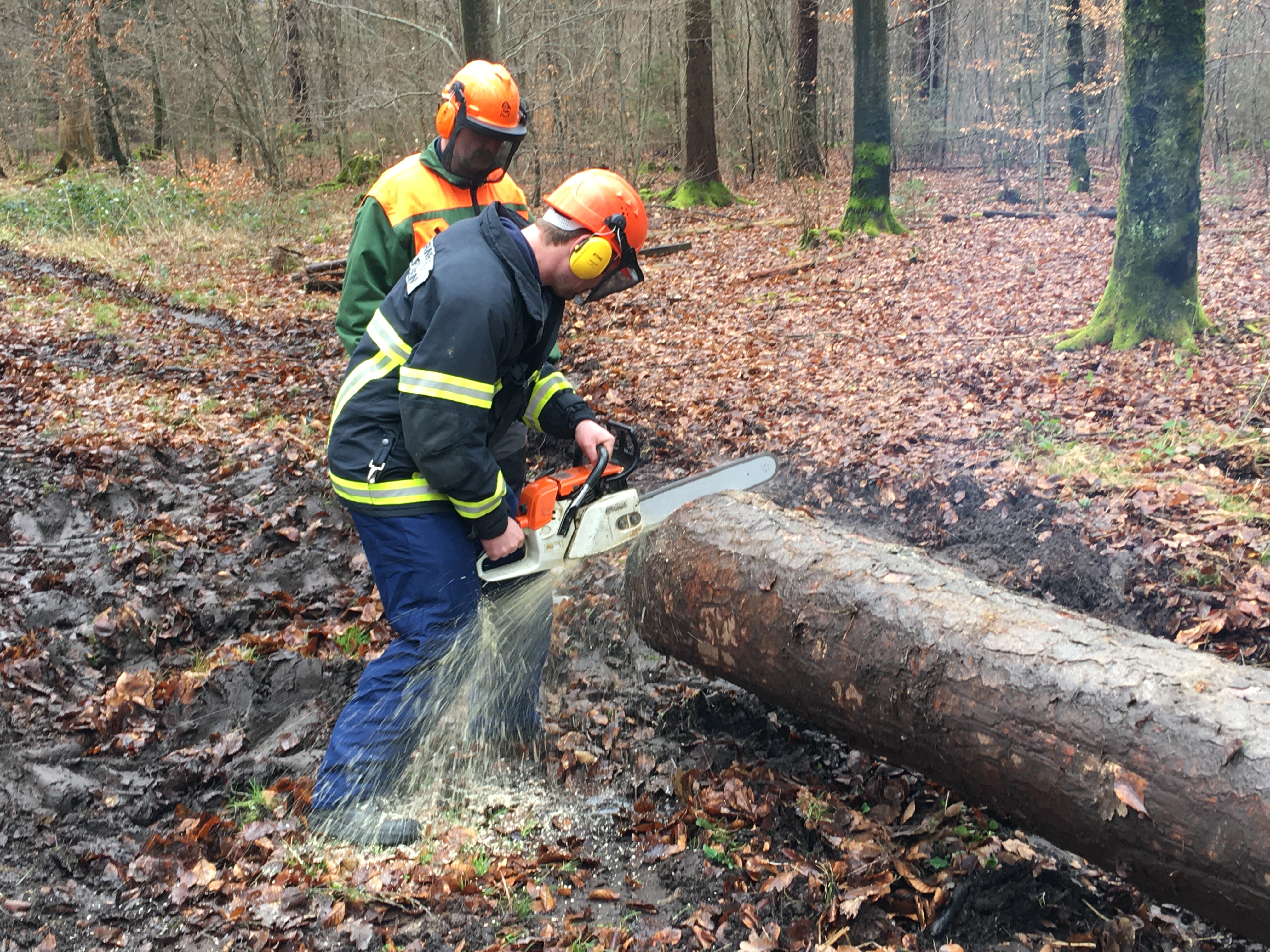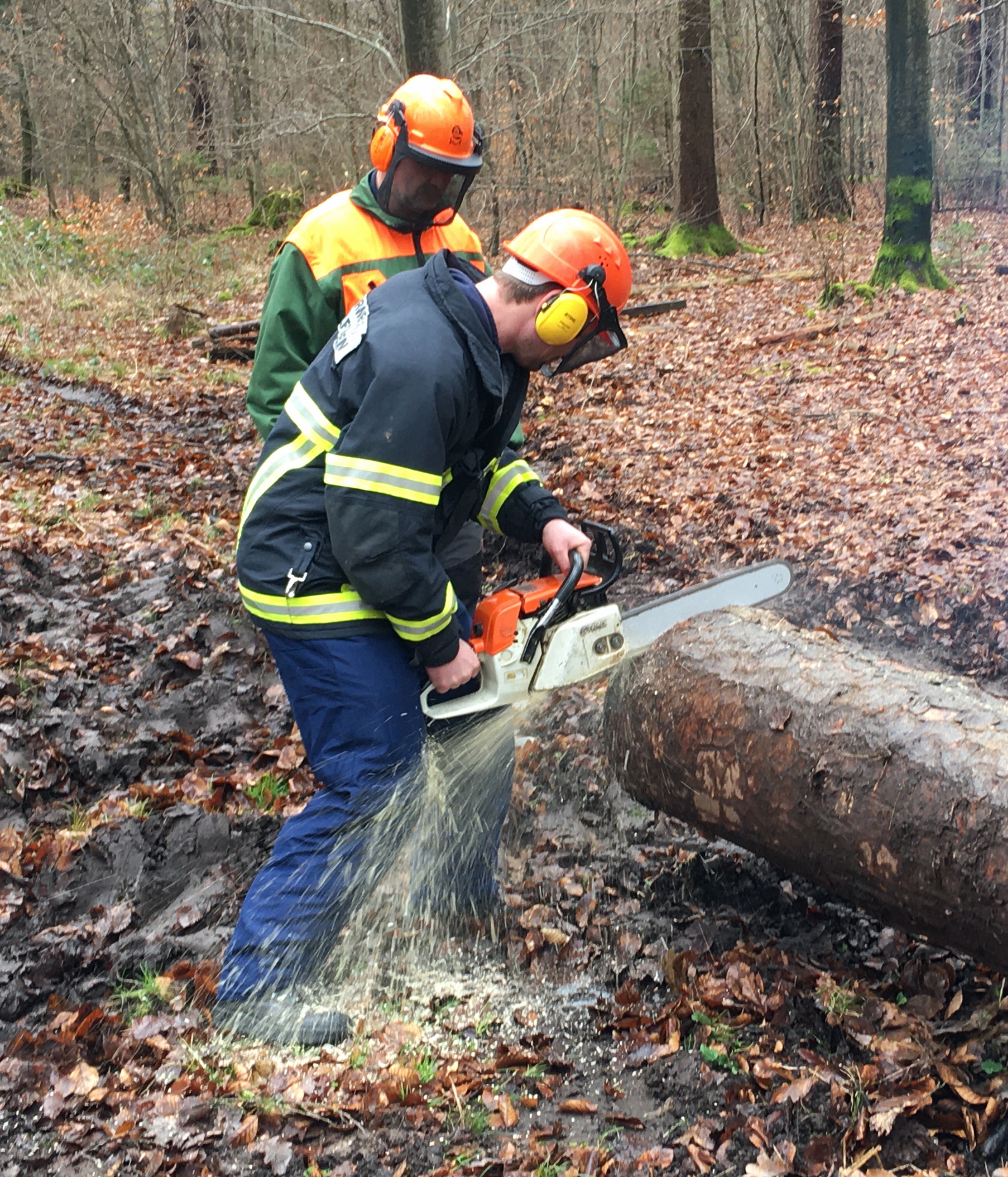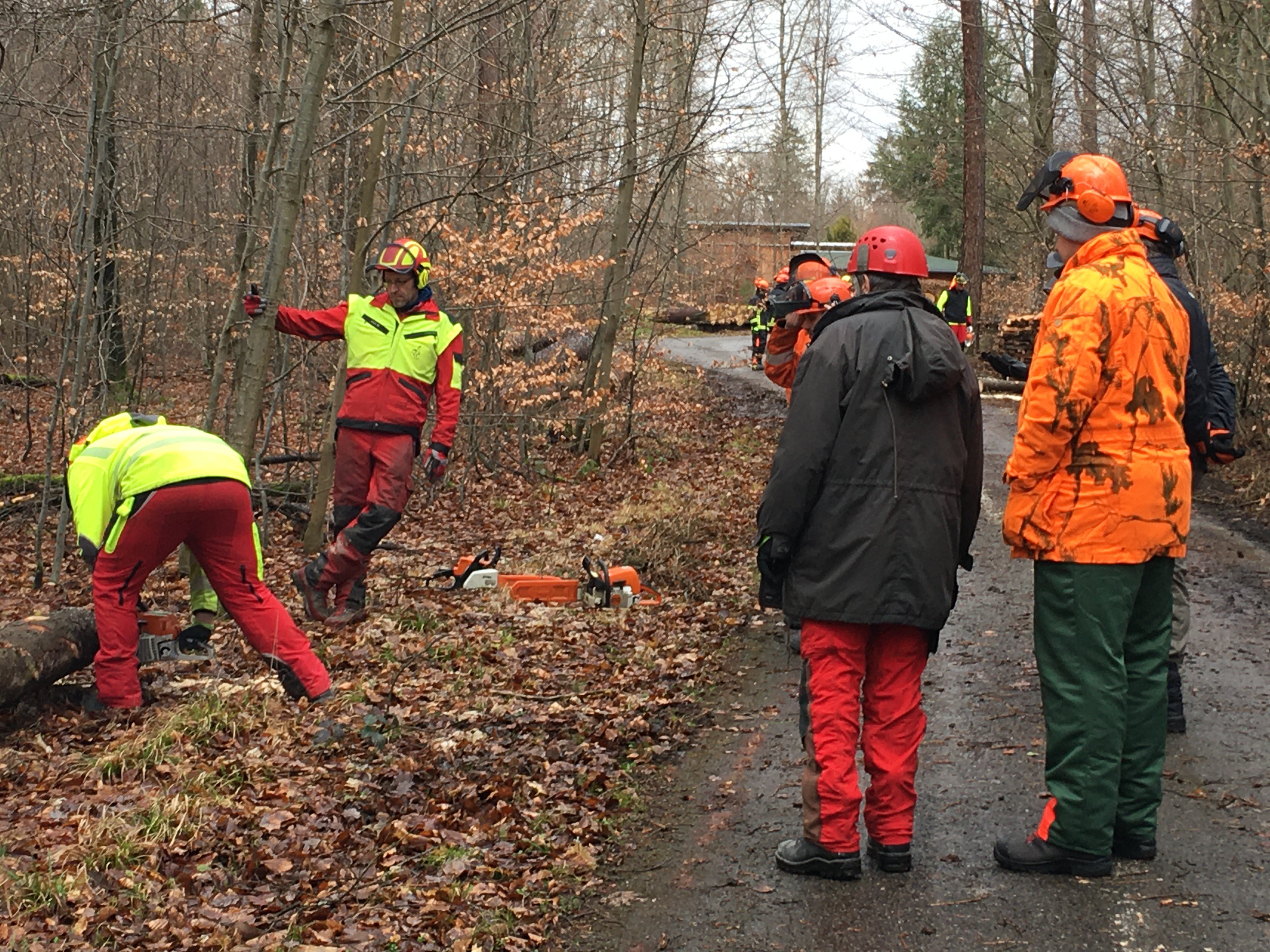 Der Orkan „Sabine“ hat eindrucksvoll gezeigt, welche Kraft und Gefahren in solchen Unwetterlage stecken. So reißt auch der Bedarf an Feuerwehrleuten nicht ab, die im Umgang mit einer Motorsäge und dem umgefallenen Holz sicher geschult sind. Wie nahezu jedes Jahr wird hierzu im Sindelfinger Stadtwald ein Motorsägenlehrgang durch städtische Mitarbeiter durchgeführt. So lernen die Teilnehmer der Feuerwehr Sindelfingen theoretische Grundlagen, Unfallverhütungsvorschriften, Wartung, Fehlerbehebung und den richtigen Umgang mit der Kettensäge. Ebenfalls werden Techniken vermittelt, wie ein umgestürzter Baum richtig zu bearbeiten ist. Natürlich dürfen auch der Umgang mit verspannten Bäumen, sowie deren Zug- und Druckkraft nicht fehlen. Ebenso lernen die Teilnehmer unter den kritischen Augen des Stadtförsters Markus Klas und seinem Team, wie man einen stehenden Baum korrekt fällt. Der Sturm „Sabine“ sorgte dafür, dass die Teilnehmer realitäts- und einsatznahe Bedingungen vorfanden.