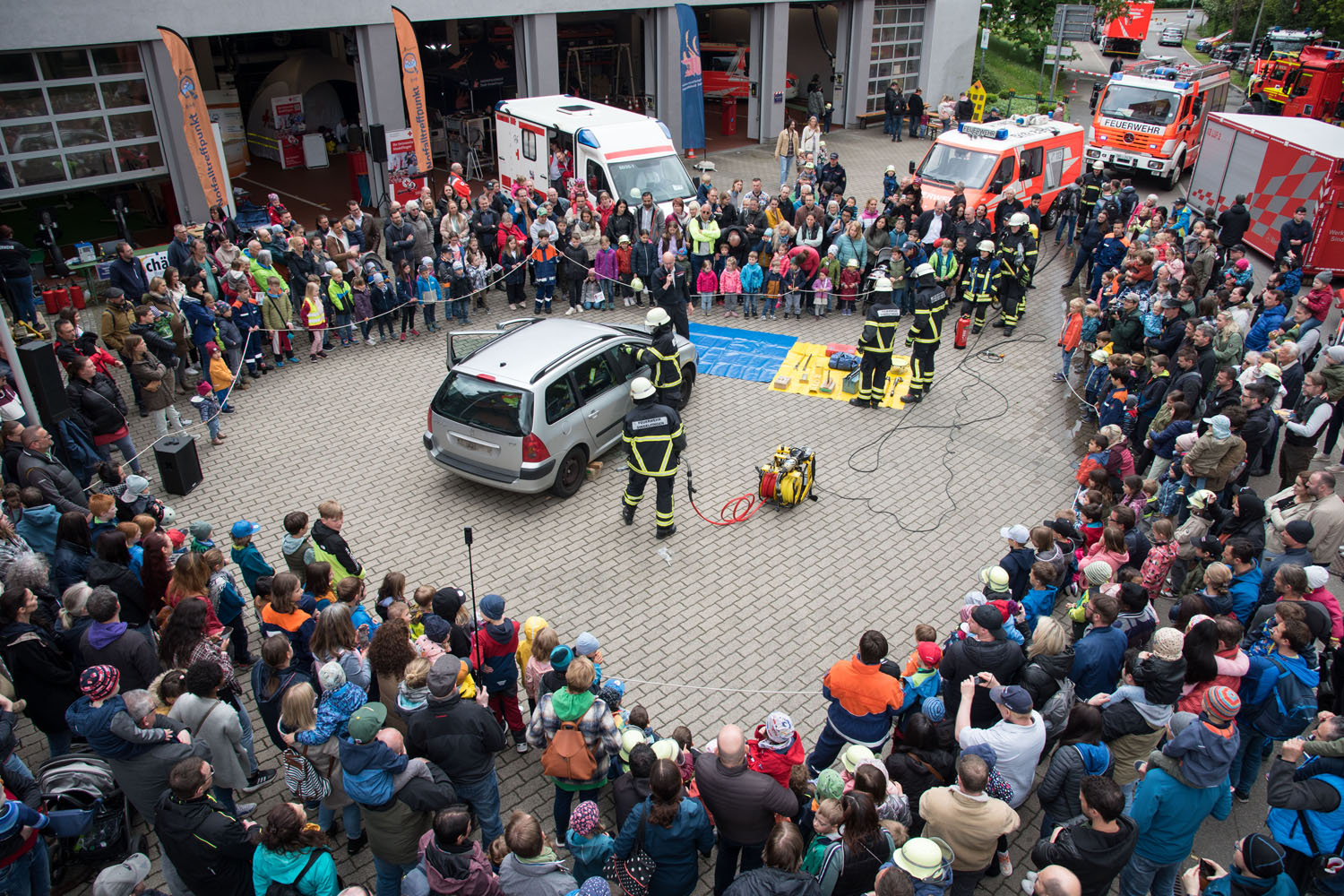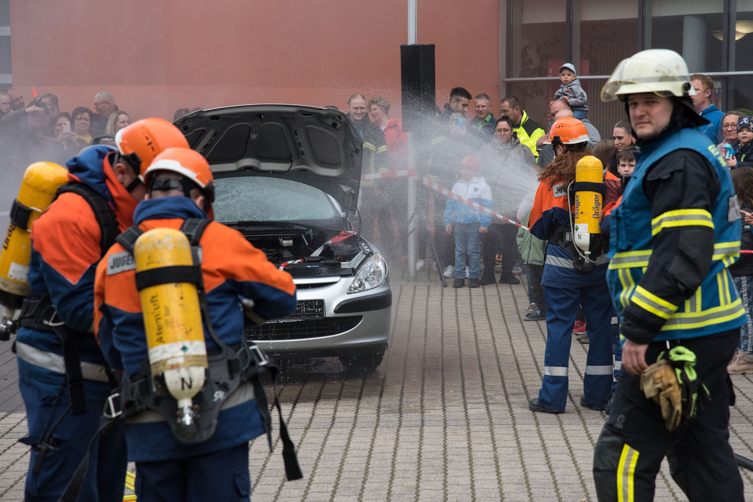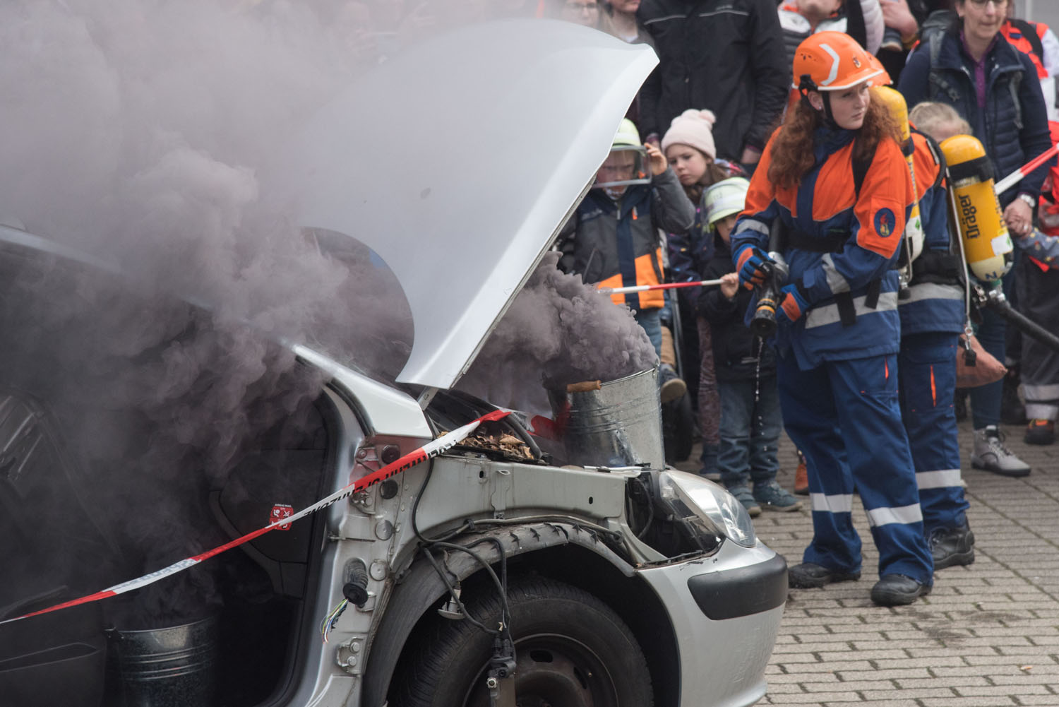 Auch bei den Schauübungen konnten die Einsatzkräfte ihr Können unter Beweis stellen. Neben einer technischen Hilfeleistung zeigte die Jugendfeuerwehr bei einem simulierten PKW-Brand ihr Können.