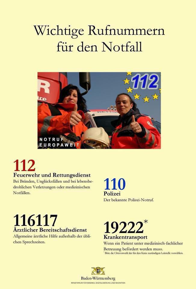 Am heutigen 11.2. findet alljährlich der Tag des europaweiten Notrufes 112 statt. Seit 2008 ist diese Nummer in allen 27 Mitgliedsstaaten der EU kostenlos erreichbar. Auch wir als Feuerwehr Sindelfingen möchten beitragen, dass diese Nummer in der Bevölkerung noch bekannter wird und das Bewusstsein für Notfälle gestärkt wird. Unter dieser Nummer erreicht man im Falle eines Notfalles eine Rettungsleitstelle.