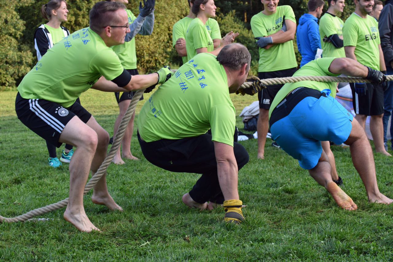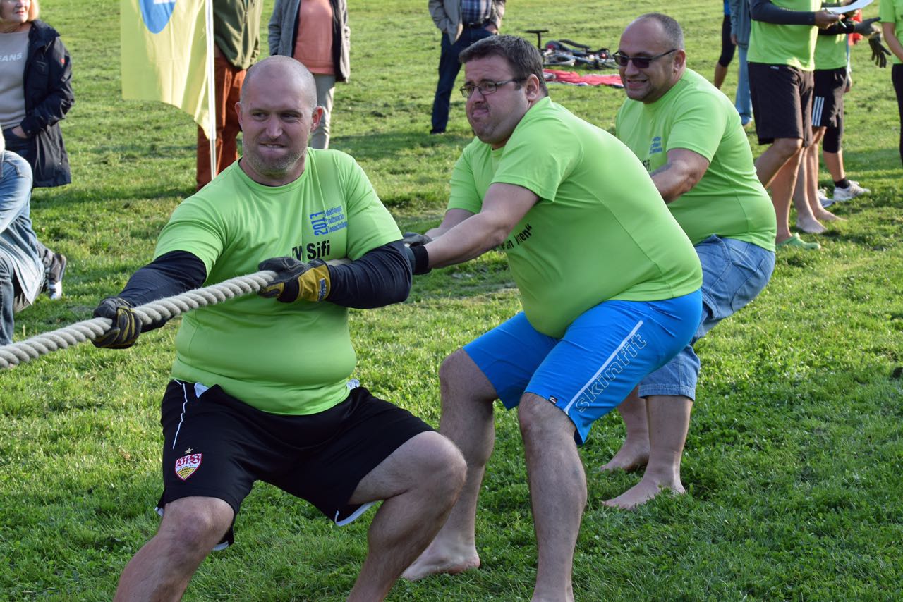 Gleich fünf Herrausforderungen waren, am dritten Tag der Teamchallenge,zu bewältigen. Baumstammsägen, Fußball-Darts, Biathlon , Kistenstapeln und Gladiatoren-Kampf.