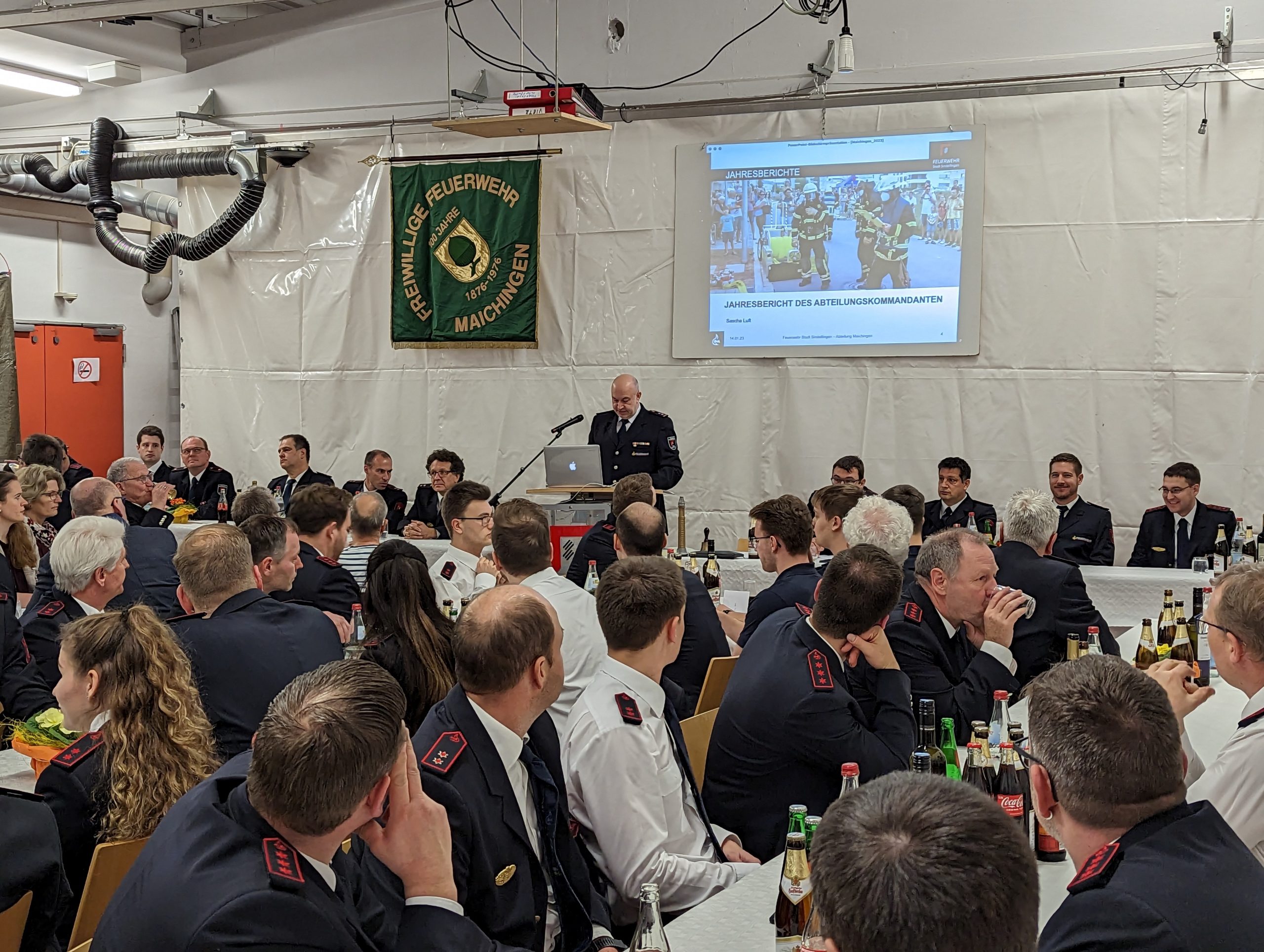 Mit 5 Minuten Verspätung startete die Abteilungsversammlung der Maichinger Feuerwehr am vergangenen Samstag. Ein Einsatz im Hinterweil war noch dazwischen gekommen.