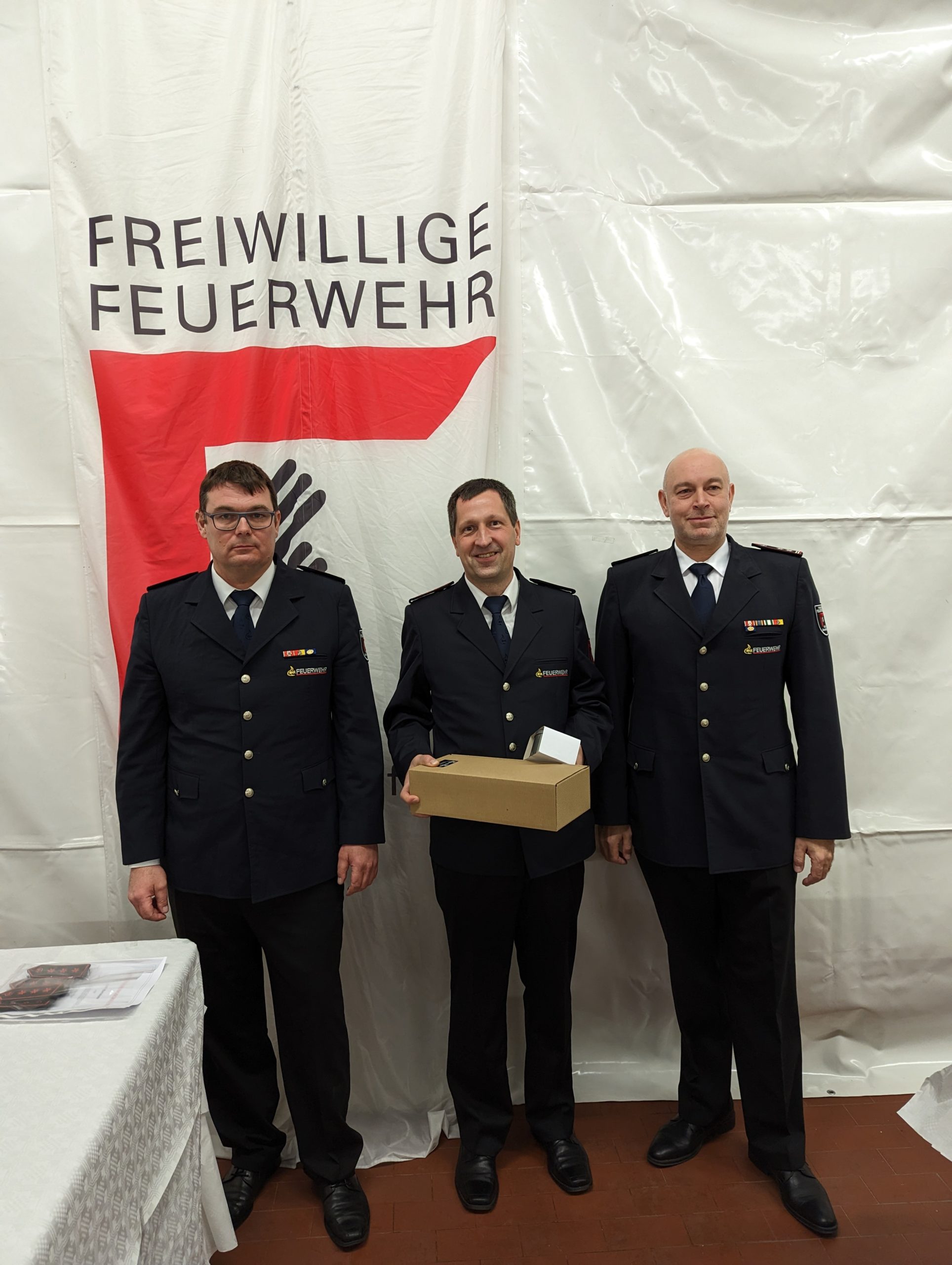 Für 15 Jahre aktiven Dienst wurde das Ehrenzeichen in Bronze des Landes Baden-Württemberg an Sascha Henoch und Jannik Roth verliehen. „25 Jahre Feuerwehrdienst. 25 Jahre Dienst am Nächsten. 25 Jahre Einsatz und Engagement“ lobt Sascha Luft Marco Obermüller in dessen Laudatio. Eine großartige Leistung, für die Obermüller geehrt wurde. Das Ehrenzeichen in Silber des Landes Baden-Württemberg wird dem Jubilar traditionell im Rahmen der gemeinsamen Hauptversammlung aller Abteilungen im März verliehen.
