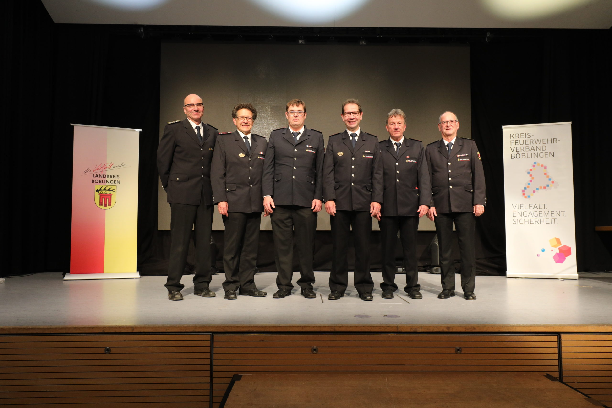 Am vergangenen Samstag fand in Magstadt der diesjährige Ehrungsabend des Kreisfeuerwehrverbandes Böblingen statt. Traditionell werden hier verdiente Feuerwehrleute für ihr Wirken und Engagement in der eigenen Wehr und darüber hinaus im Landkreis geehrt. Bei der diesjährigen Verleihung, bei der auch Feuerwehrkommandant Rainer Just und Ehrenkommandant Wolfgang Finkbeiner anwesend waren, wurde vier unserer Kameraden eine Ehrenmedaille verliehen: